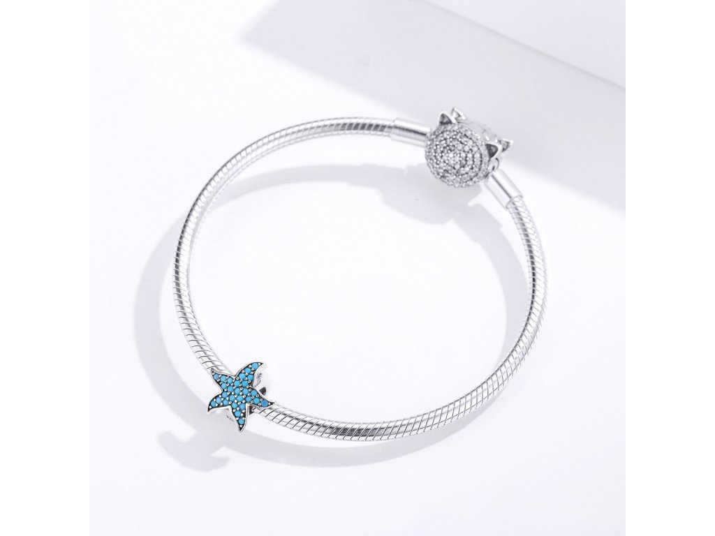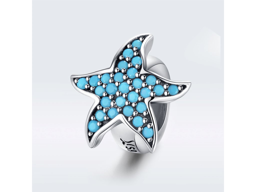 - Stříbrný přívěsek / spacer v designu Mořské hvězdice zdobené tyrkysovými zirkony. Originální design přívěsku, kvalitní zpracování a materiál, ručně dohotovené.