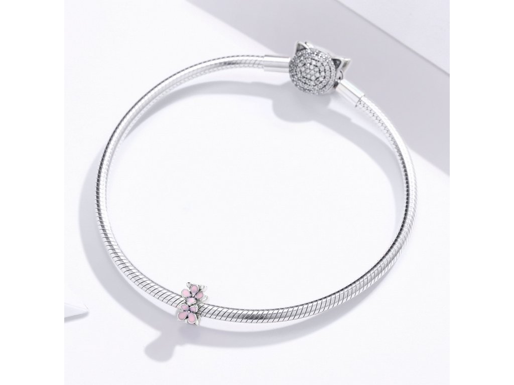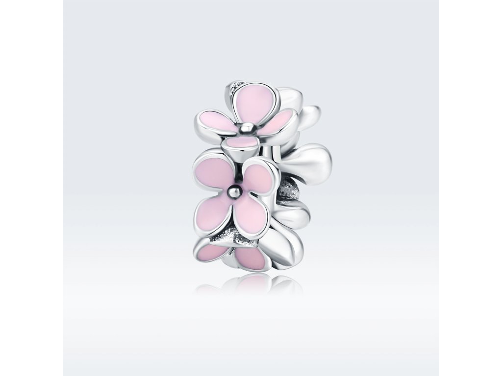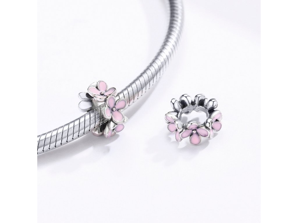 - Stříbrný propracovaný přívěsek Spacer / Oddělovač v designu Pole růžových květin zdobených ručně nanášenou glazurou. Originální design přívěsku, kvalitní zpracování a materiál, ručně dohotovené.