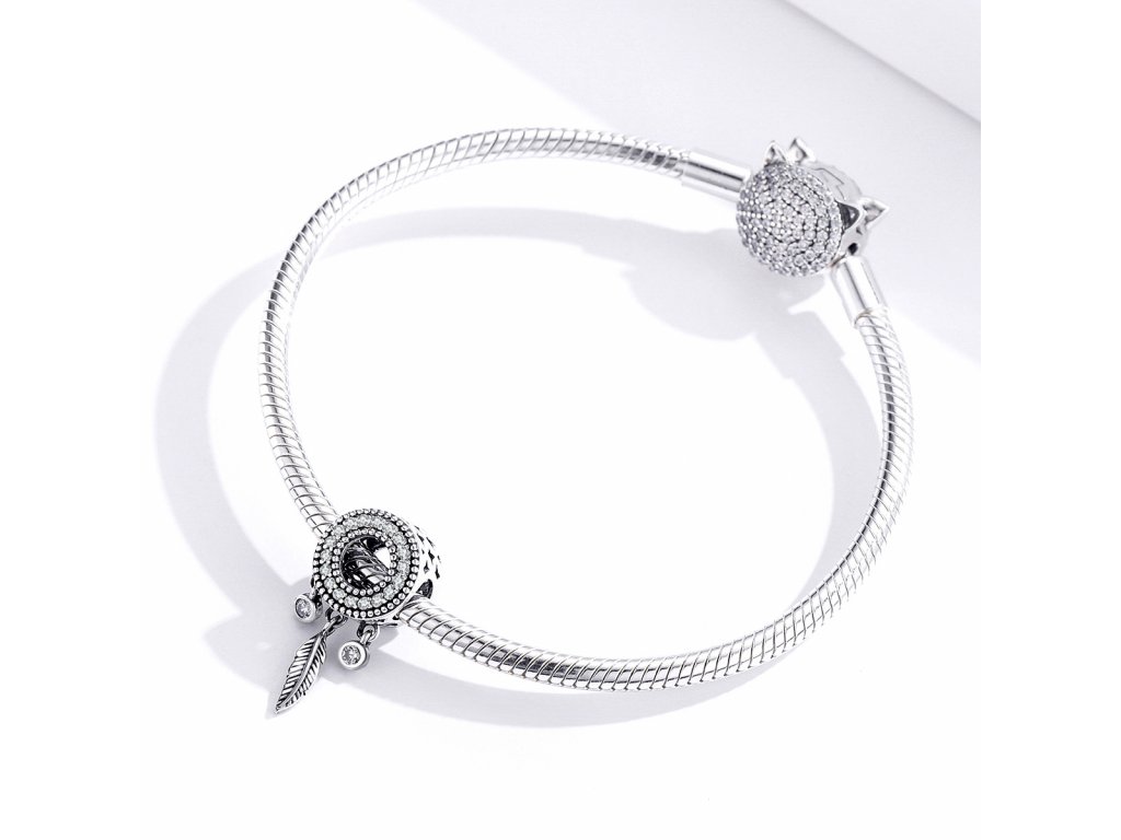 - Stříbrný přívěsek v designu Spirituálního lapače snů zdobeného smaltem, čirými kameny v podobě zirkonů a ručně vyřezávanými hvězdy po stranách. Lapač snů zachytí noční můry. Dle legendy lapač zachytí špatné sny a první ranní paprsek je zničí. Originální design přívěsku, kvalitní zpracování a materiál, ručně dohotovené.