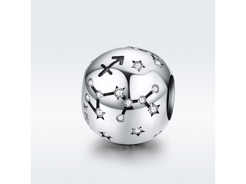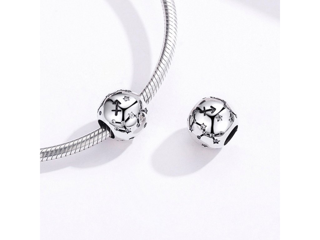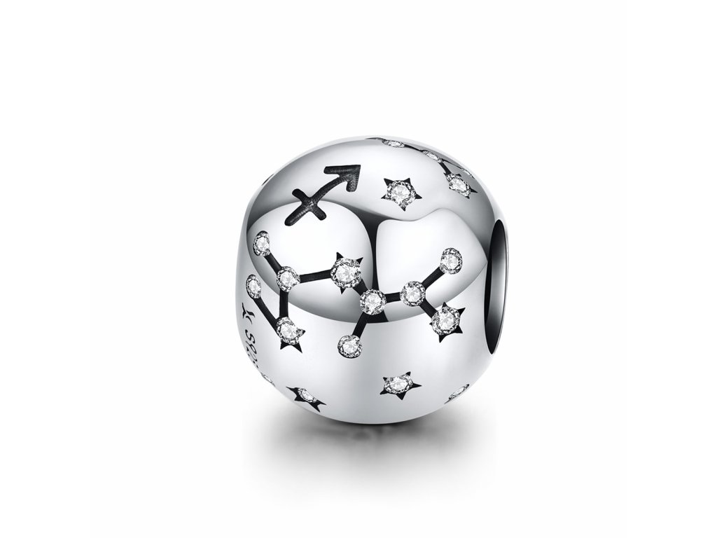 - Stříbrný přívěsek / korálek v designu Znamení zvěrokruhu Střelec zdobený čirými třpytivými zirkony. Originální design přívěsku, kvalitní zpracování a materiál, ručně dohotovené.