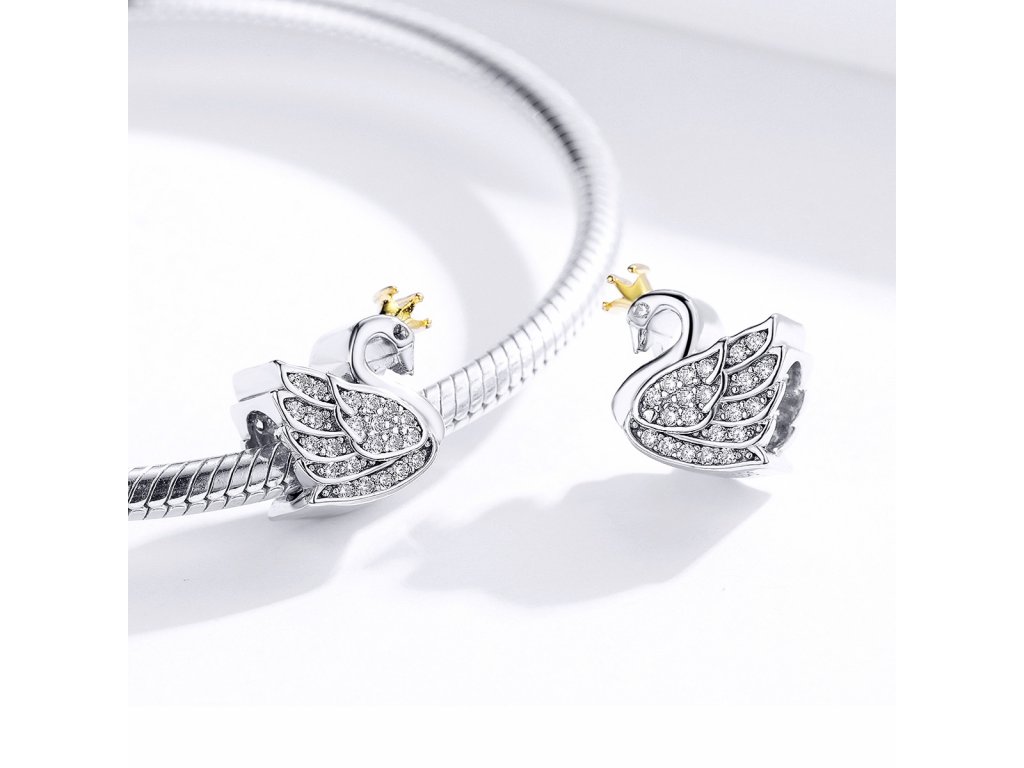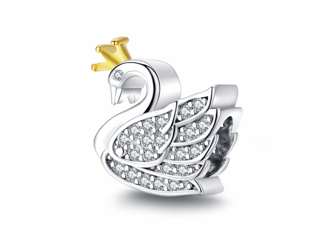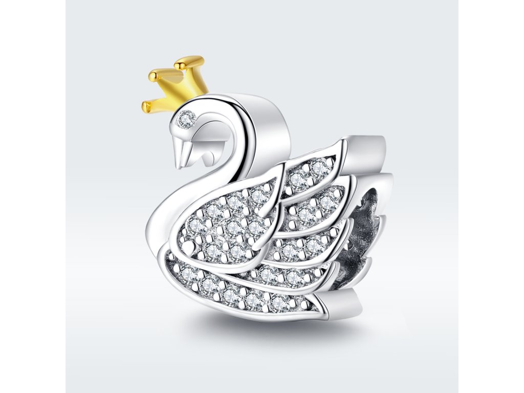 - Stříbrný přívěsek v designu Krásné třpytivé labutě zdobené korunkou a čirými zirkony. Originální design přívěsku, kvalitní zpracování a materiál, ručně dohotovené.