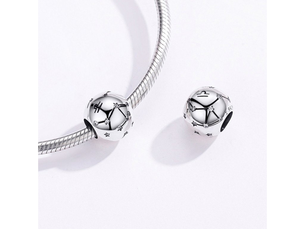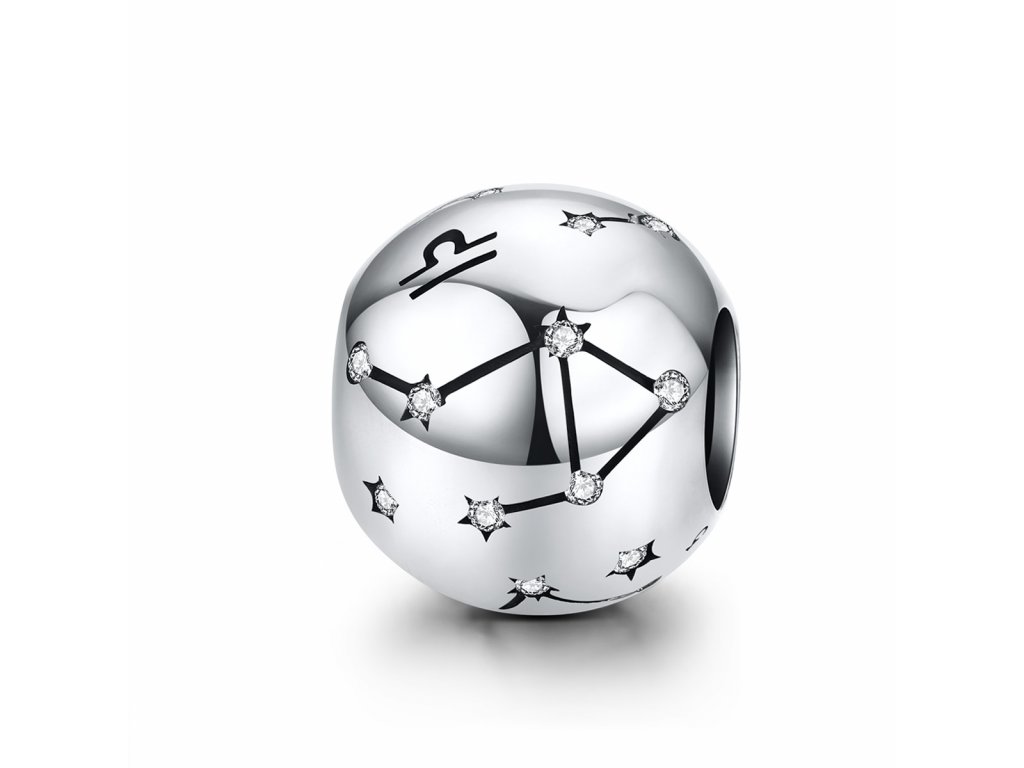 - Stříbrný přívěsek / korálek v designu Znamení zvěrokruhu Váhy zdobený čirými třpytivými zirkony. Originální design přívěsku, kvalitní zpracování a materiál, ručně dohotovené.