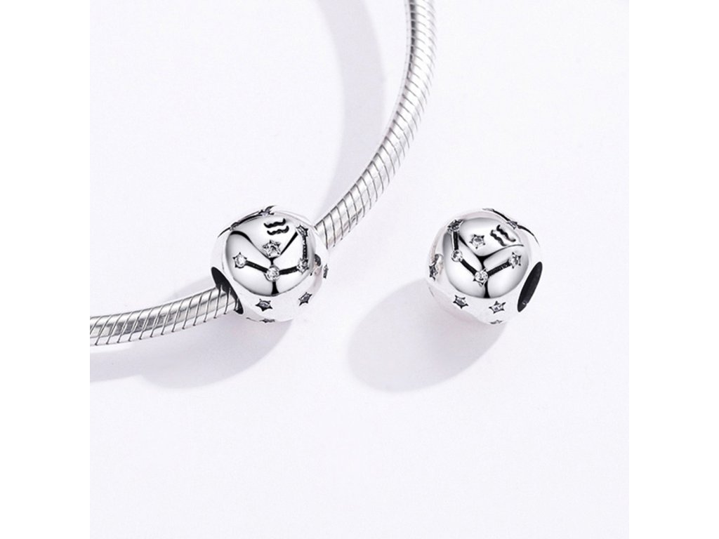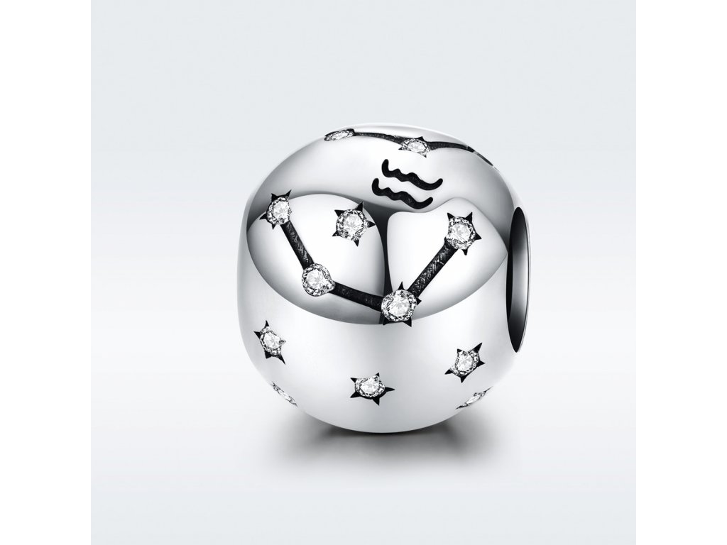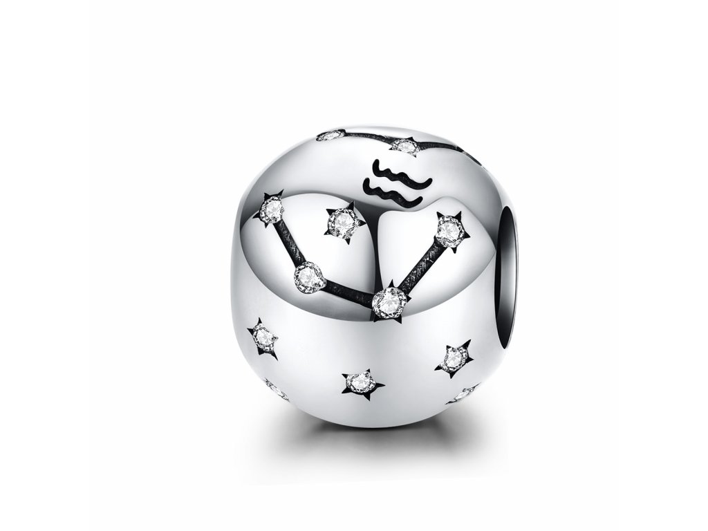 - Stříbrný přívěsek / korálek v designu Znamení zvěrokruhu Vodnář zdobený čirými třpytivými zirkony. Originální design přívěsku, kvalitní zpracování a materiál, ručně dohotovené.