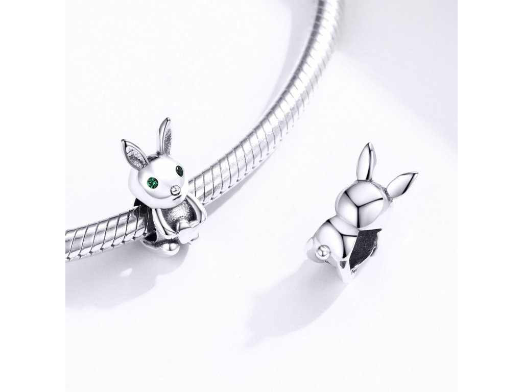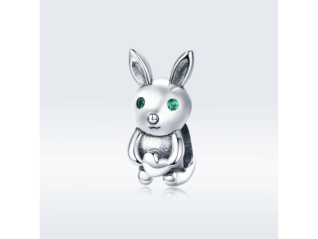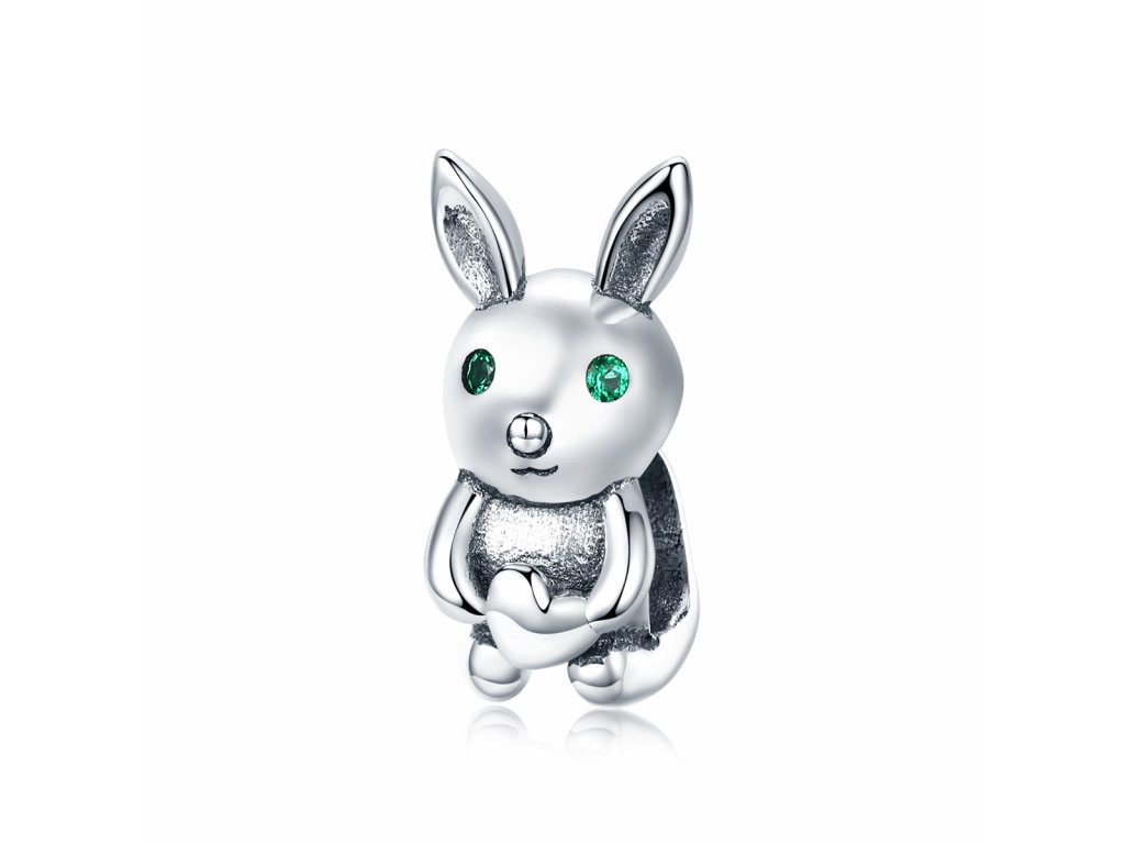 - Stříbrný přívěsek v designu Zamilovaného králíčka zdobeného srdcem a zelenými zirkony. Originální design přívěsku, kvalitní zpracování a materiál, ručně dohotovené.