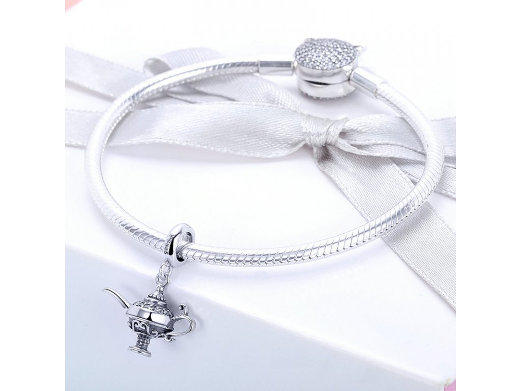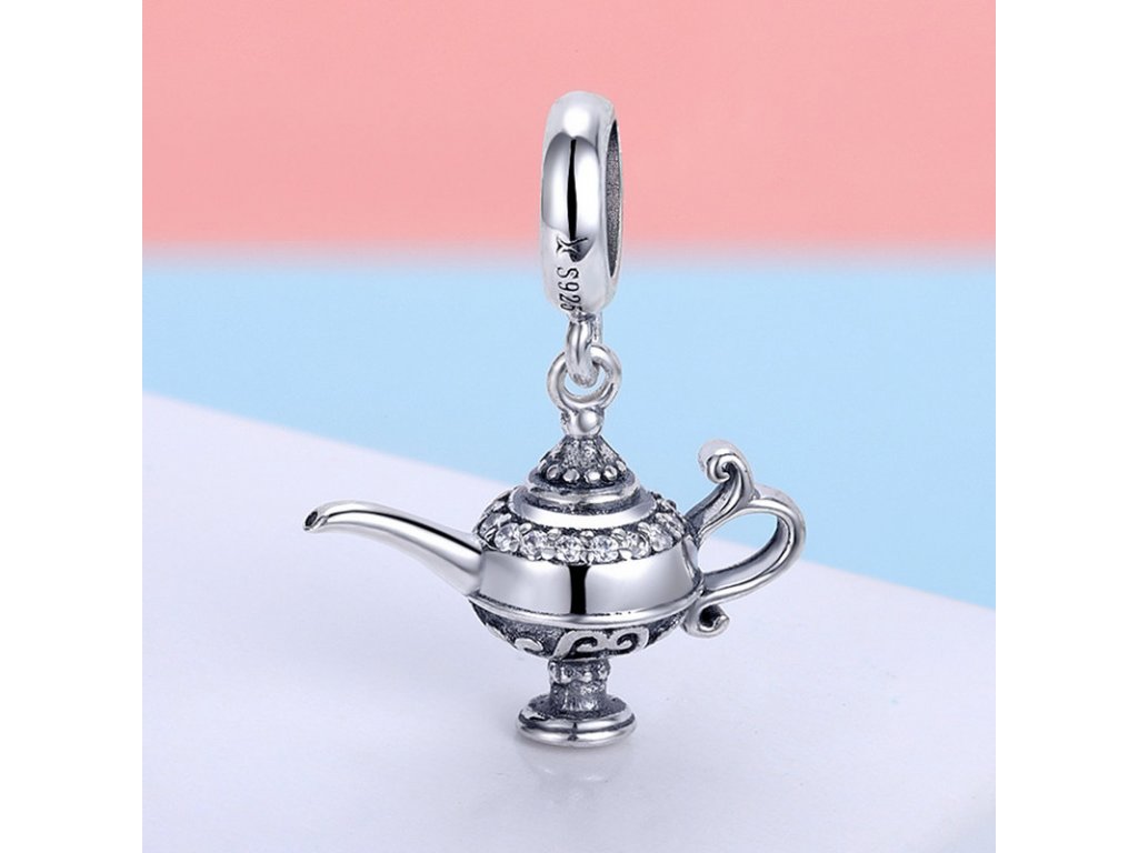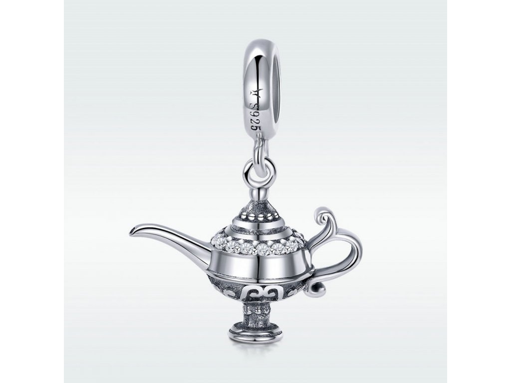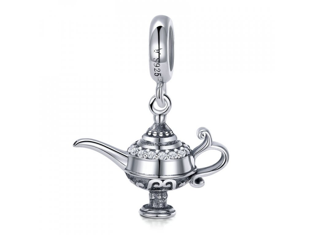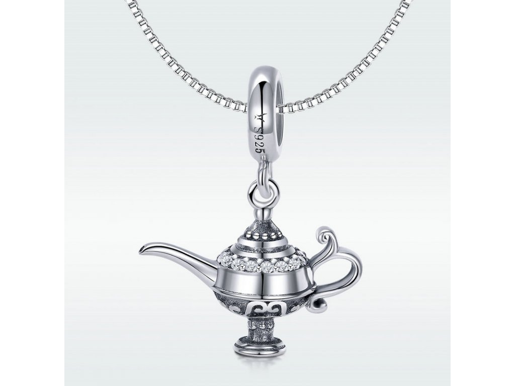 - Přívěsek v designu aladinovy kouzelné lampy zdobený třpytivými zirkony.