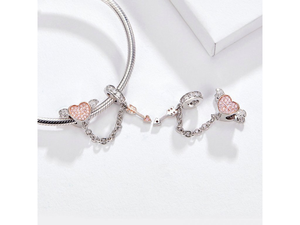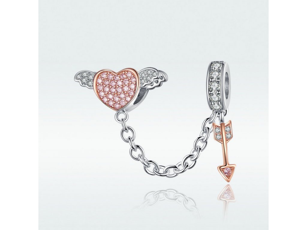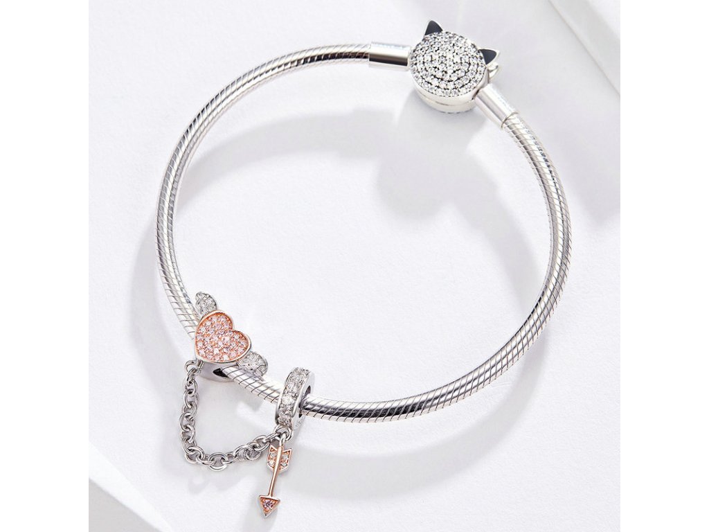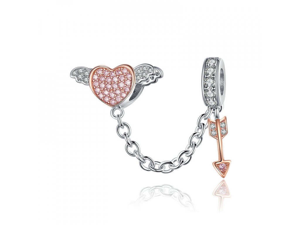 Stříbrný přívěsek v designu Amorův šíp lásky zdobený čirými třpytivými a světle růžovými zirkony. Originální design přívěsku, kvalitní zpracování a materiál, ručně dohotovené.