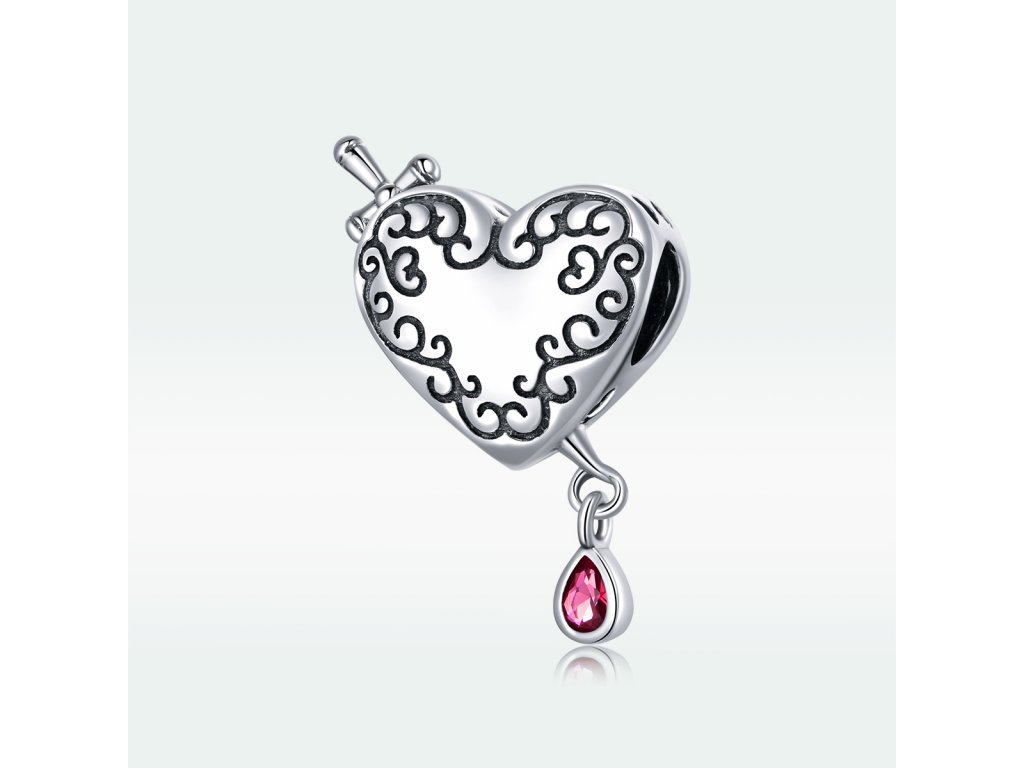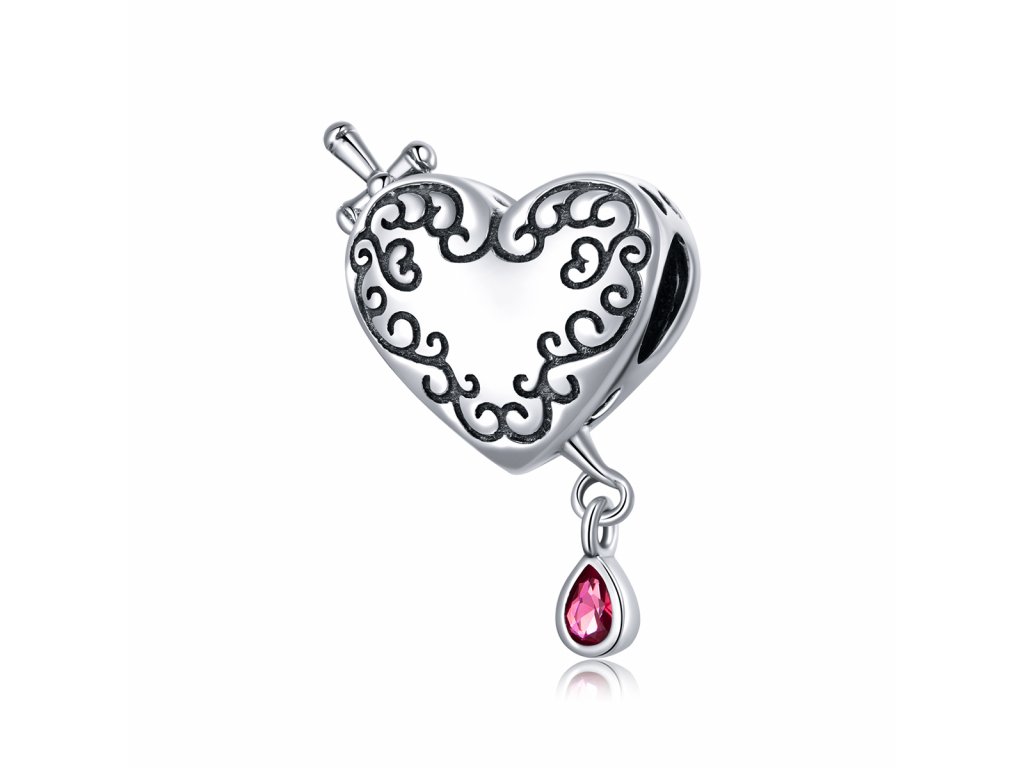 - Stříbrný oxidovaný přívěsek ve tvaru srdce zdobený třešňově červeným kamenem ve tvaru kapky. Originální design přívěsku, kvalitní zpracování a materiál, ručně dohotovené.