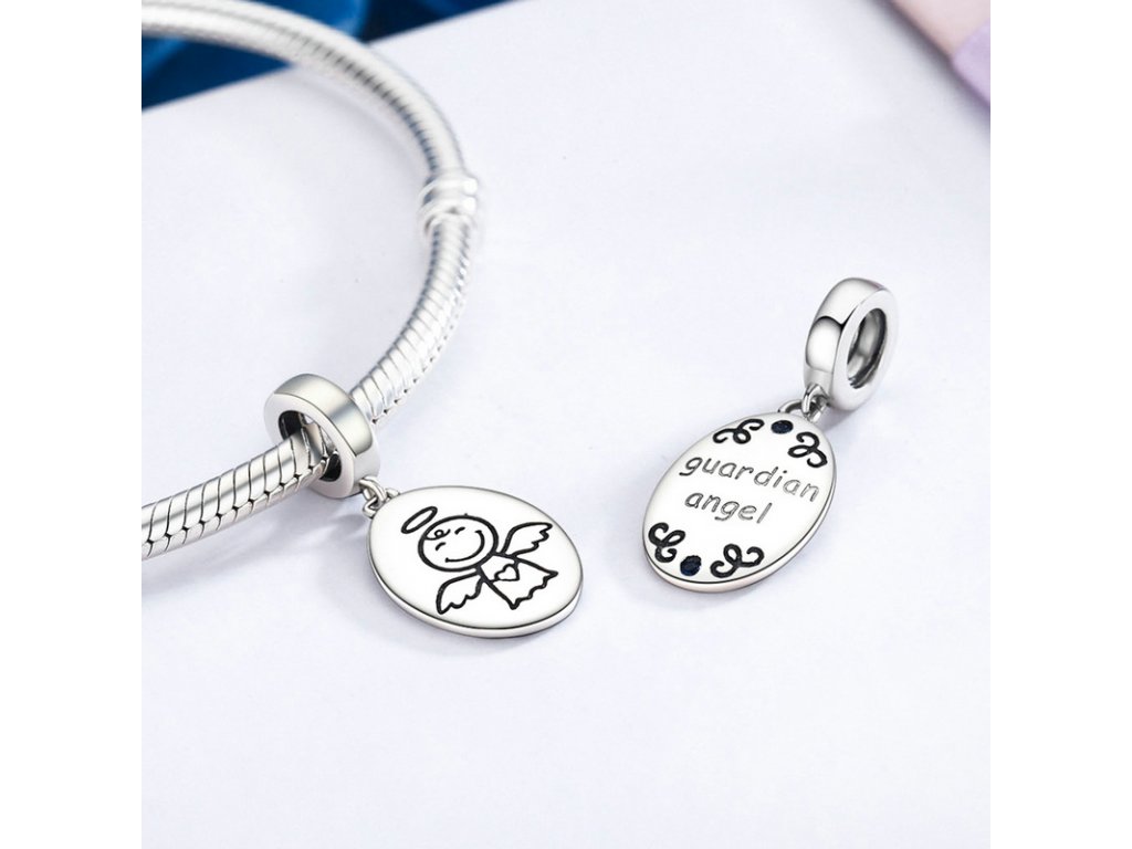 Druhá strana přívěsku je obohacena anglickým nápisem "Guardian Angel" v překladu "Anděl strážný".