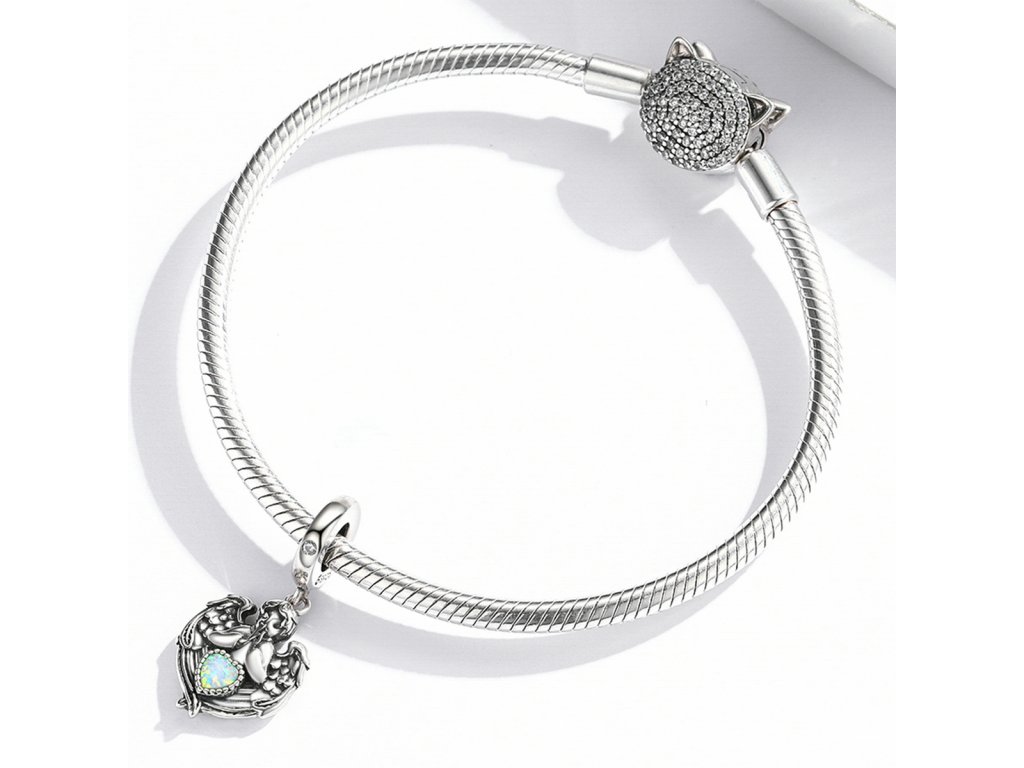 - Stříbrný visací přívěsek v designu modlícího se anděla zdobeného třpytivým zirkonem a barevným opálem ve tvaru milovaného srdce. Originální design přívěsku, kvalitní zpracování a materiál, ručně dohotovené.