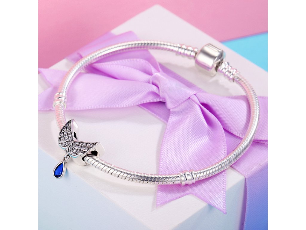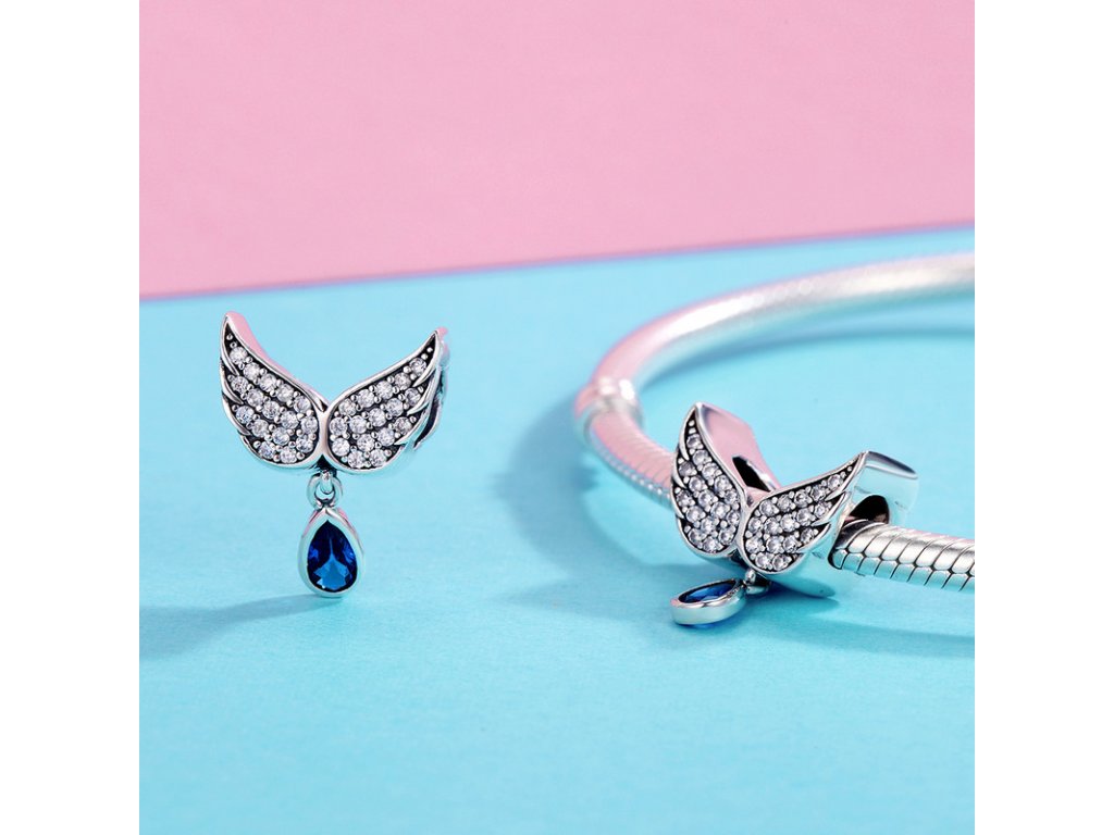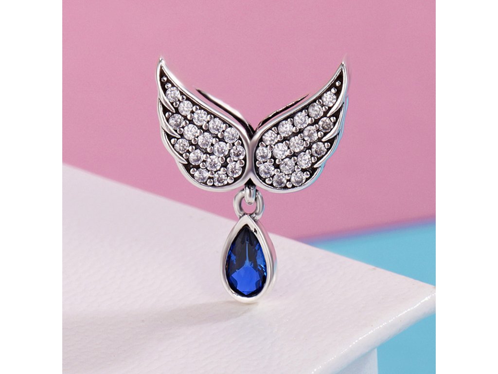 Luxusní a propracovaný korálek v designu andělských křídlech zdobených ručně posázenými třpytivými zirkony.
