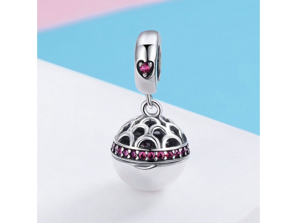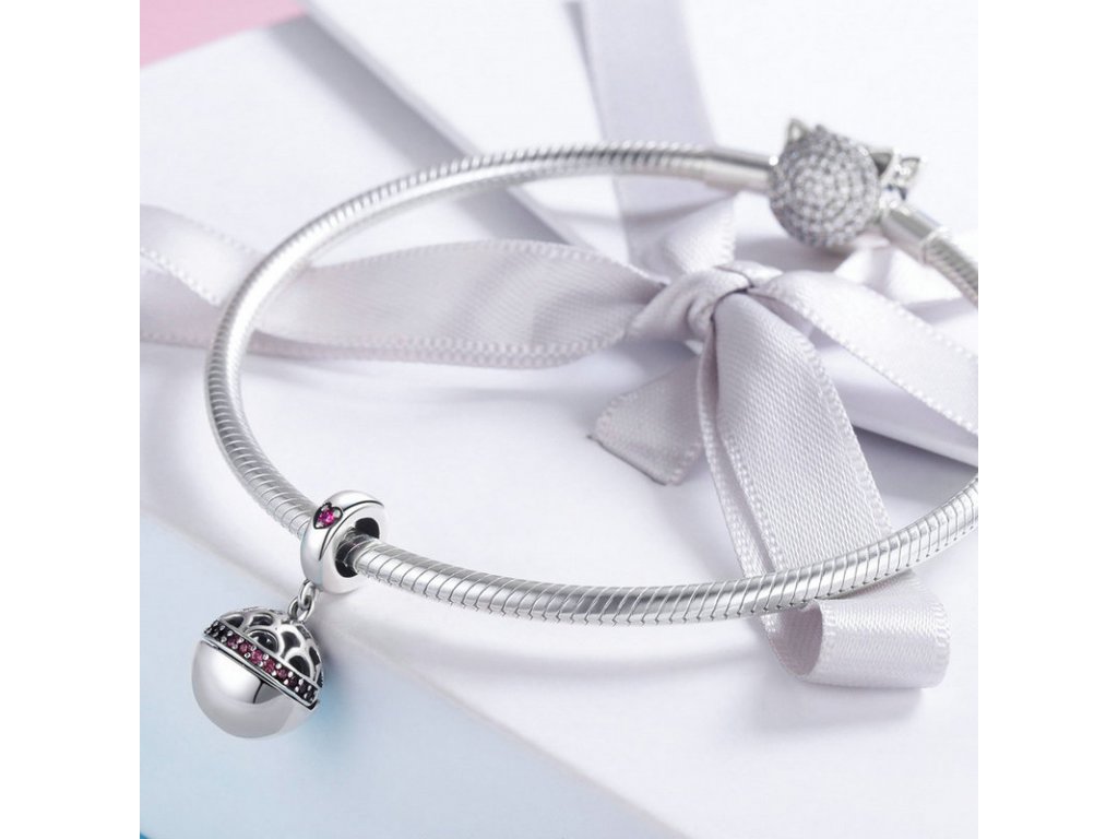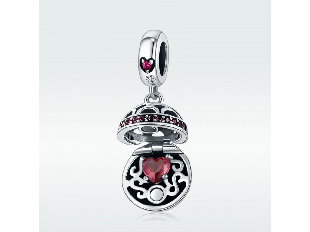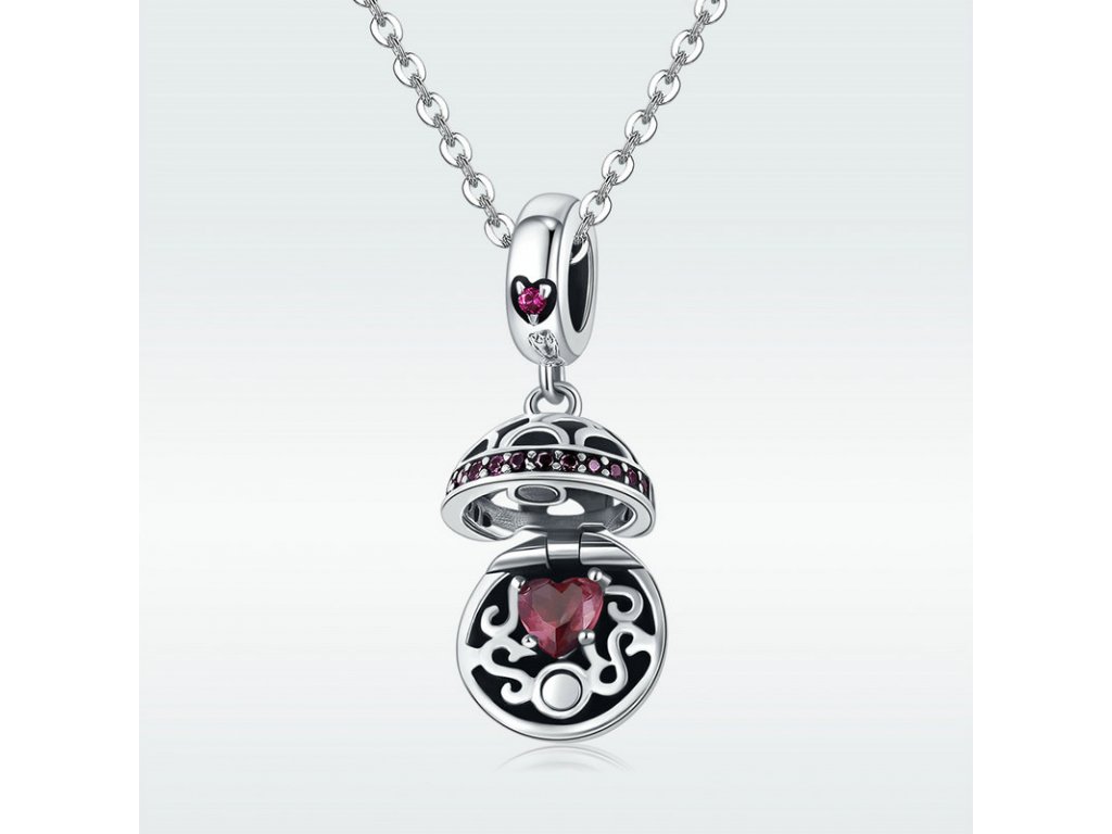 - Luxusní a propracovaný stříbrný visací přívěsek v designu červeného překvapení zdobený zirkony.