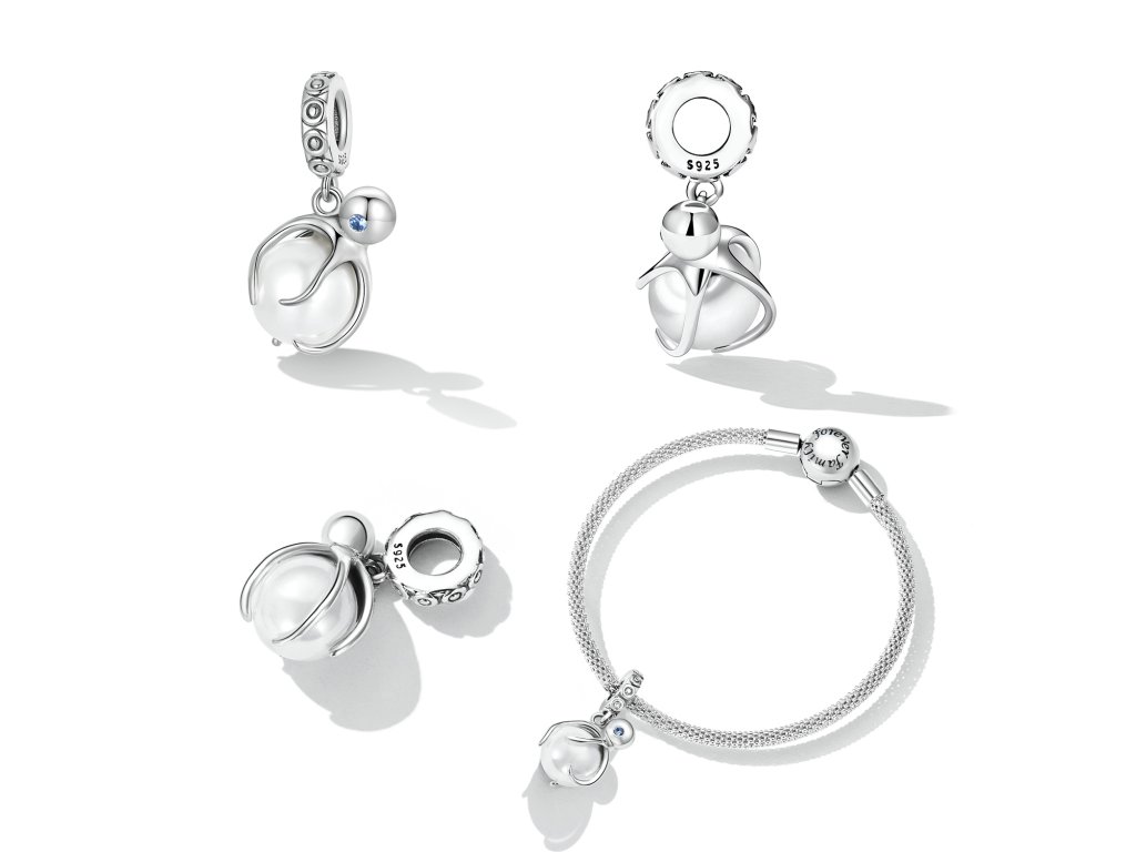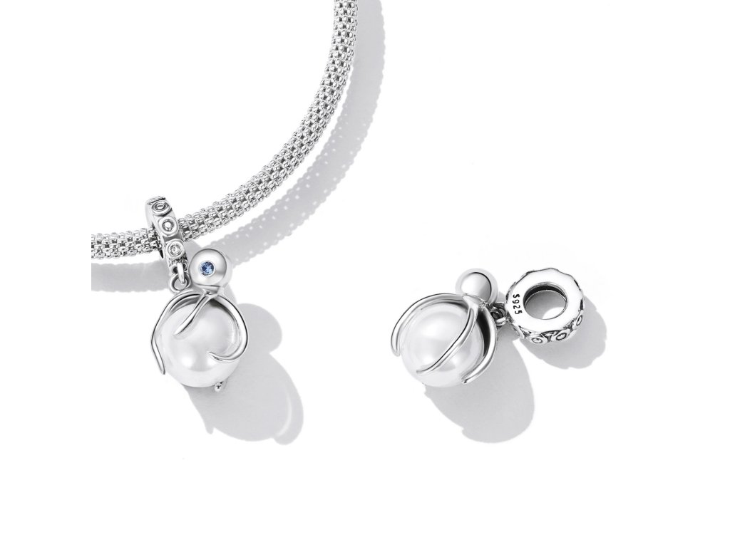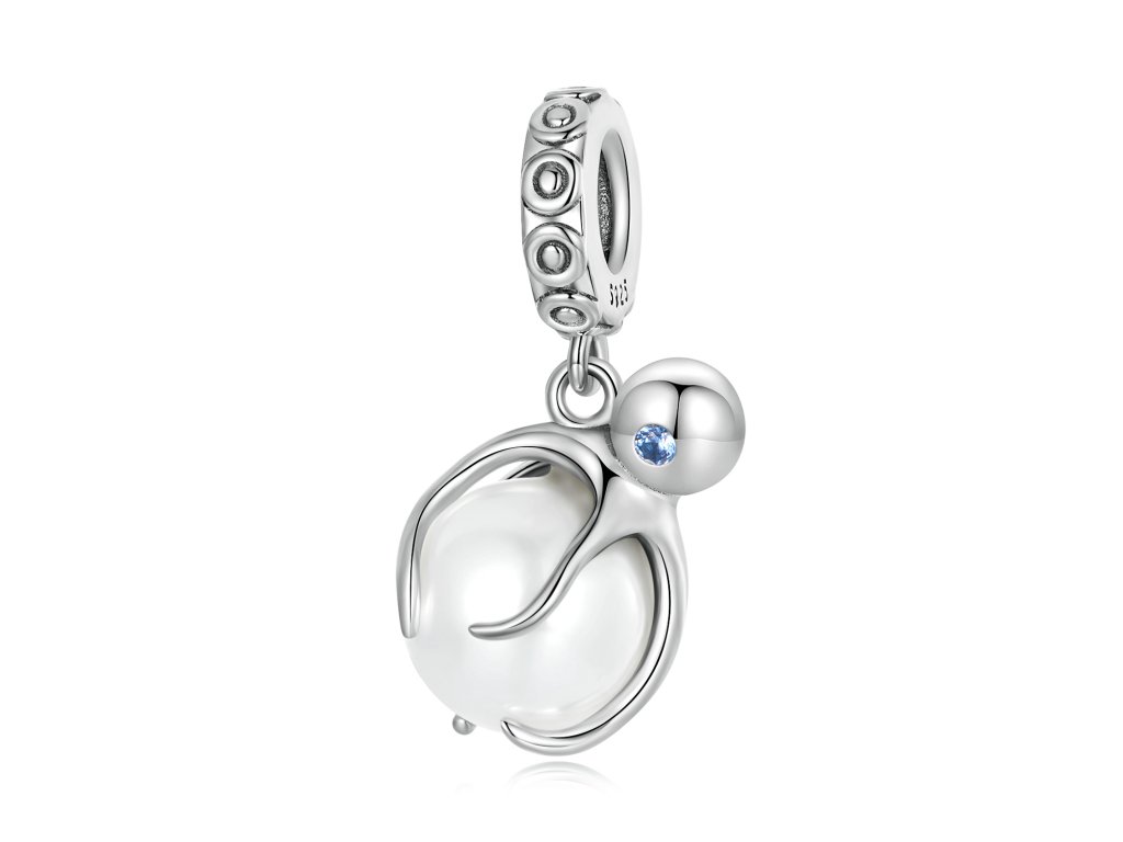 - Stříbrný visací přívěsek v designu mořské chobotnice s modrým zirkonem objímající jemnou perlu. Originální design přívěsku, kvalitní zpracování a materiál, ručně dohotovené.