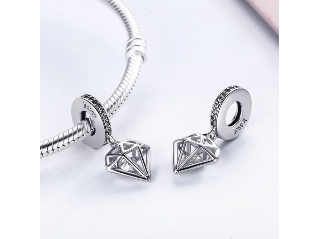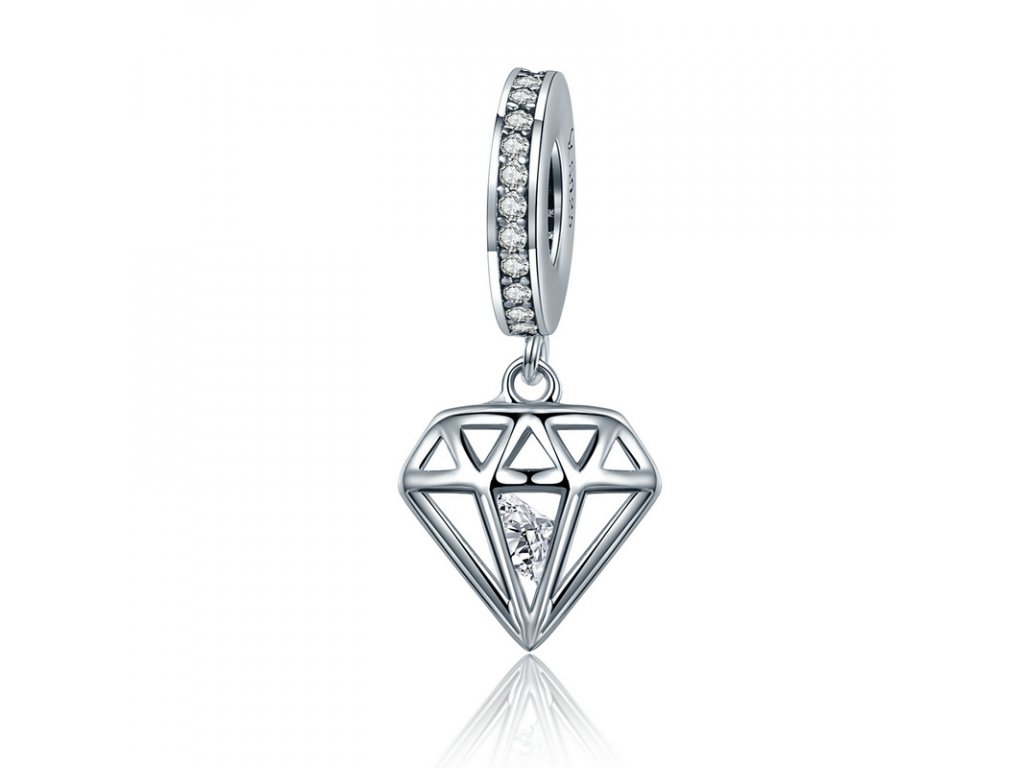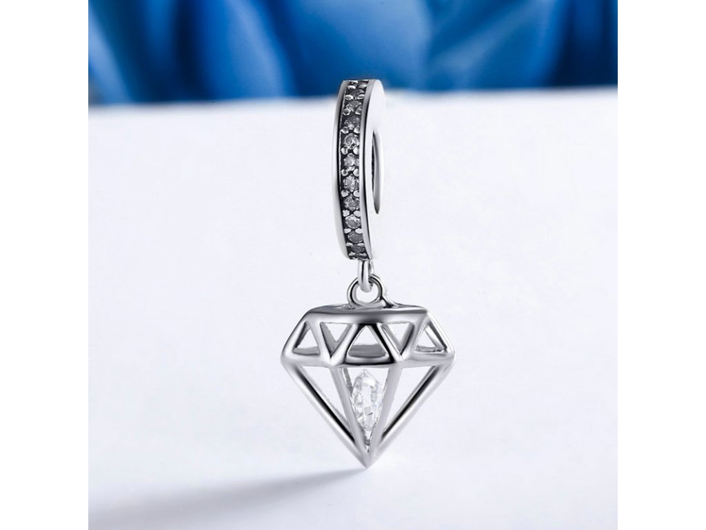 Luxusní visací přívěsek ve tvaru drahokamu zdobený ručně posázenými třpytivými zirkony.