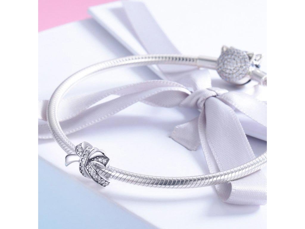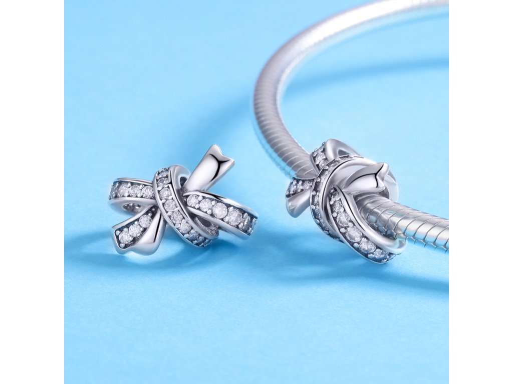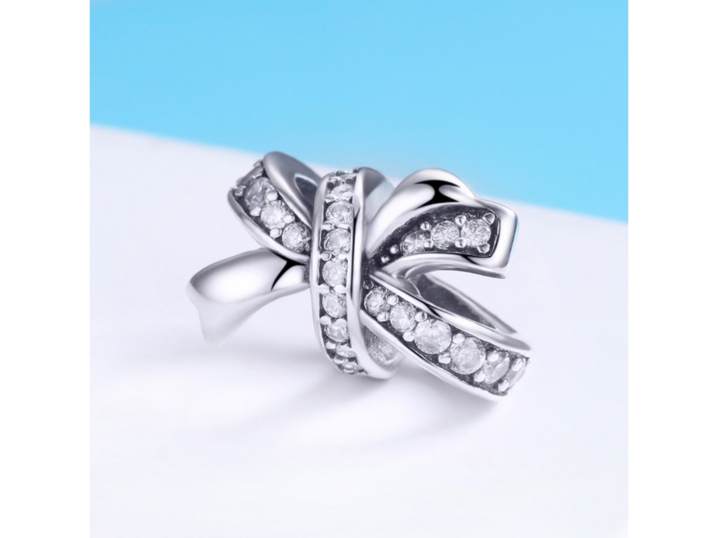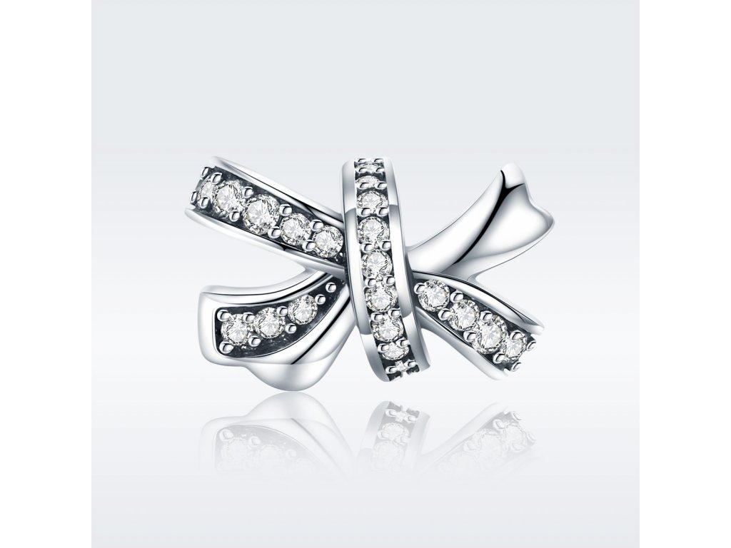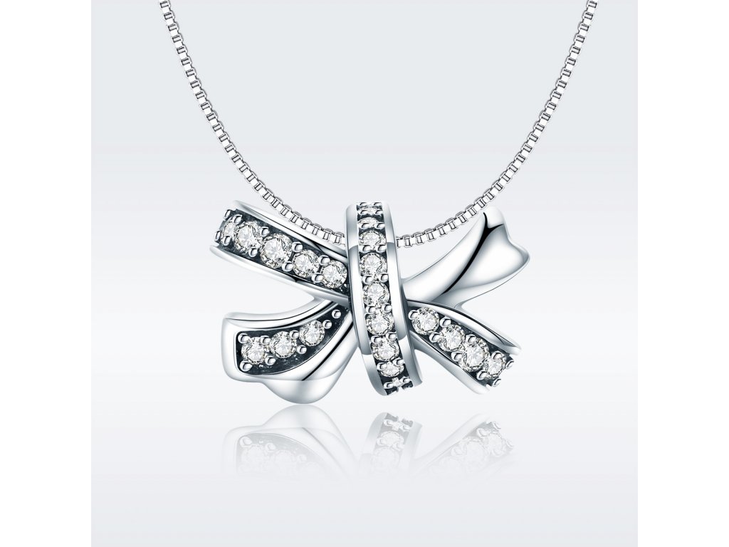 - Přívěsek v designu elegantní mašle zdobené čirými zirkony.