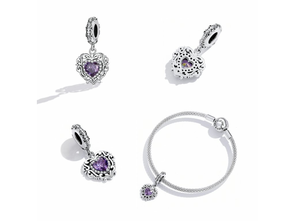 Elenys stříbrný přívěsek Fialové broušené srdce