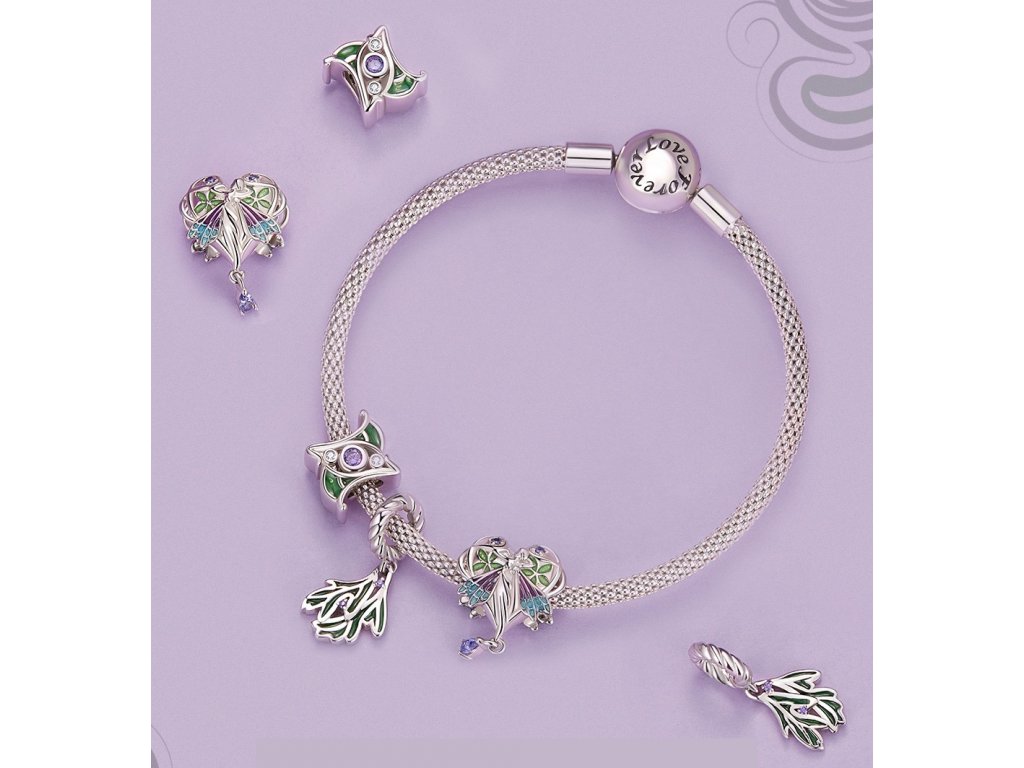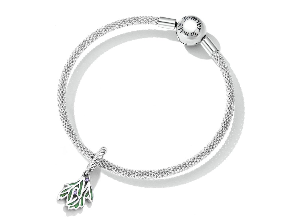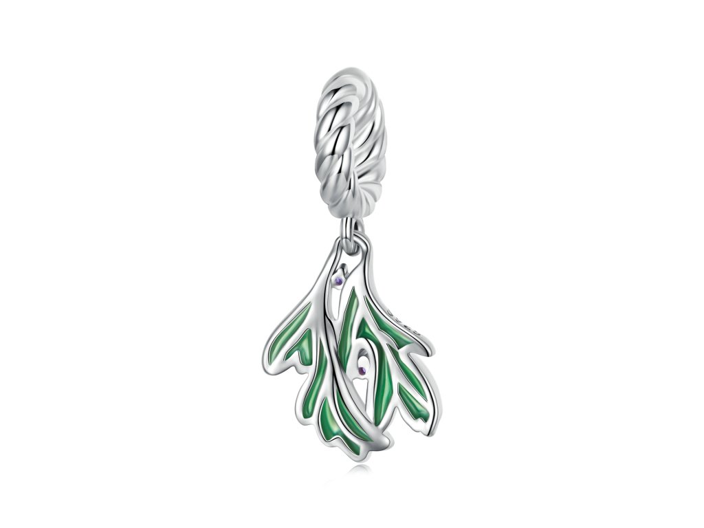 - Stříbrný visací přívěsek v designu lístků zdobených fialovými zirkony a ručně nanášenou zelenou glazurou. Originální design přívěsku, kvalitní zpracování a materiál, ručně dohotovené.
