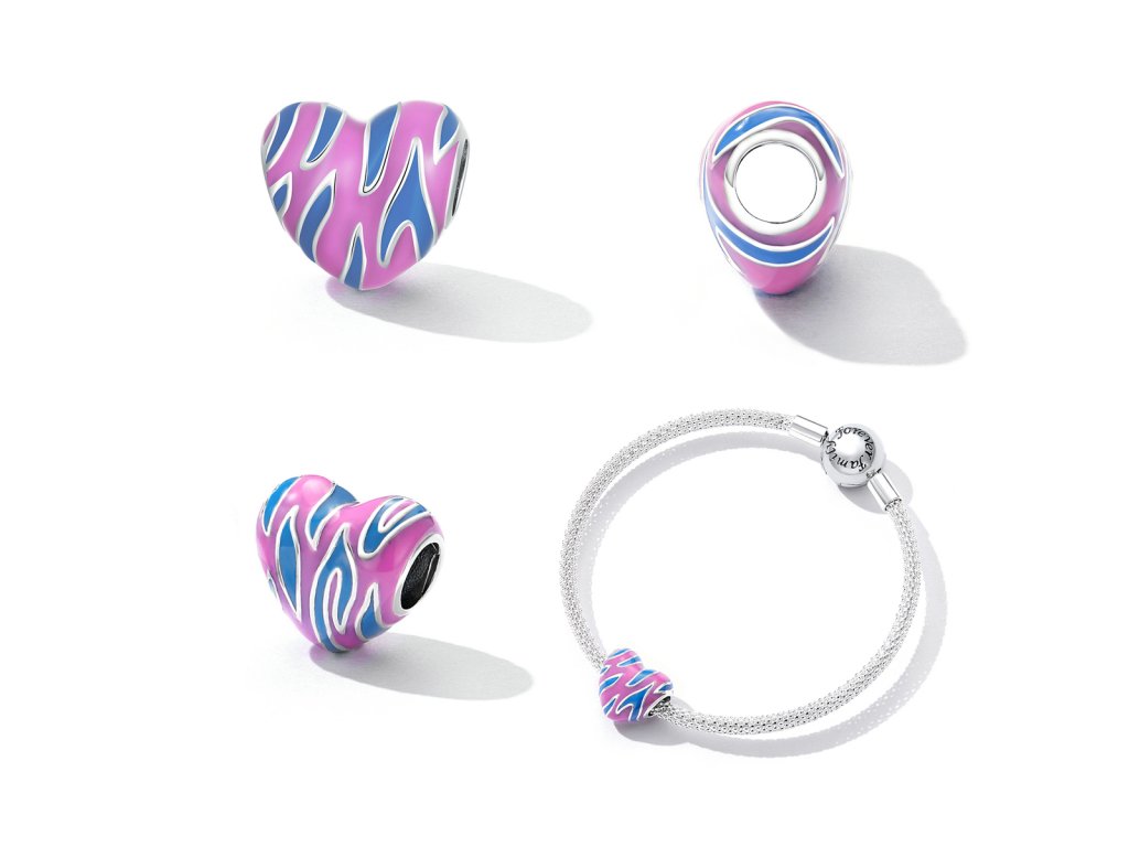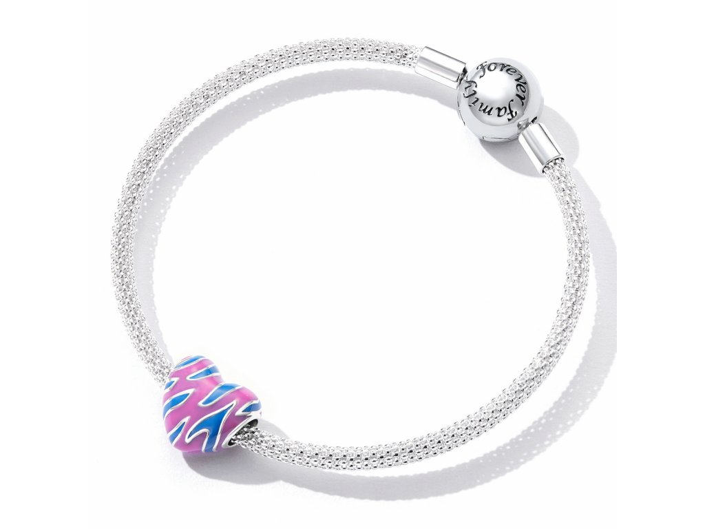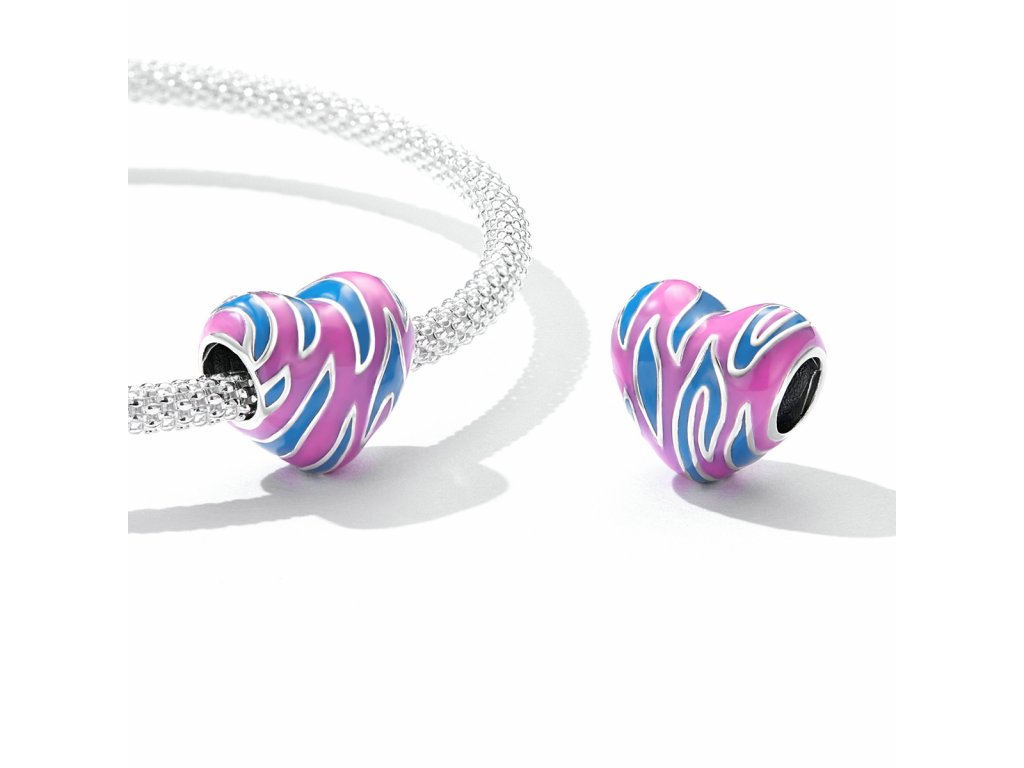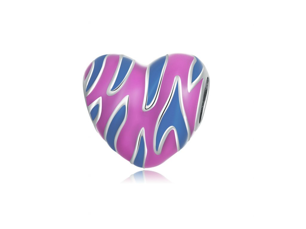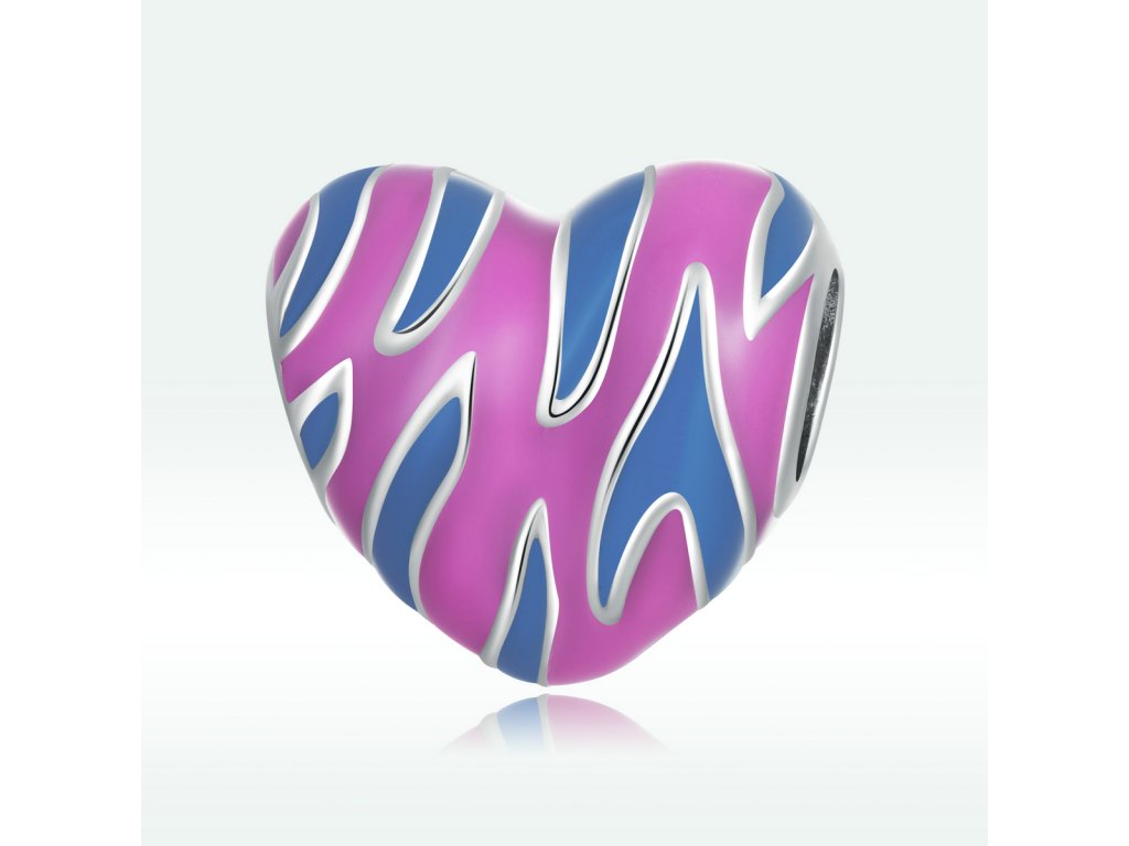 - Stříbrný přívěsek v designu srdce s plameny zdobeného ručně nanášenou růžovou a modrou glazurou. Originální design přívěsku, kvalitní zpracování a materiál, ručně dohotovené.