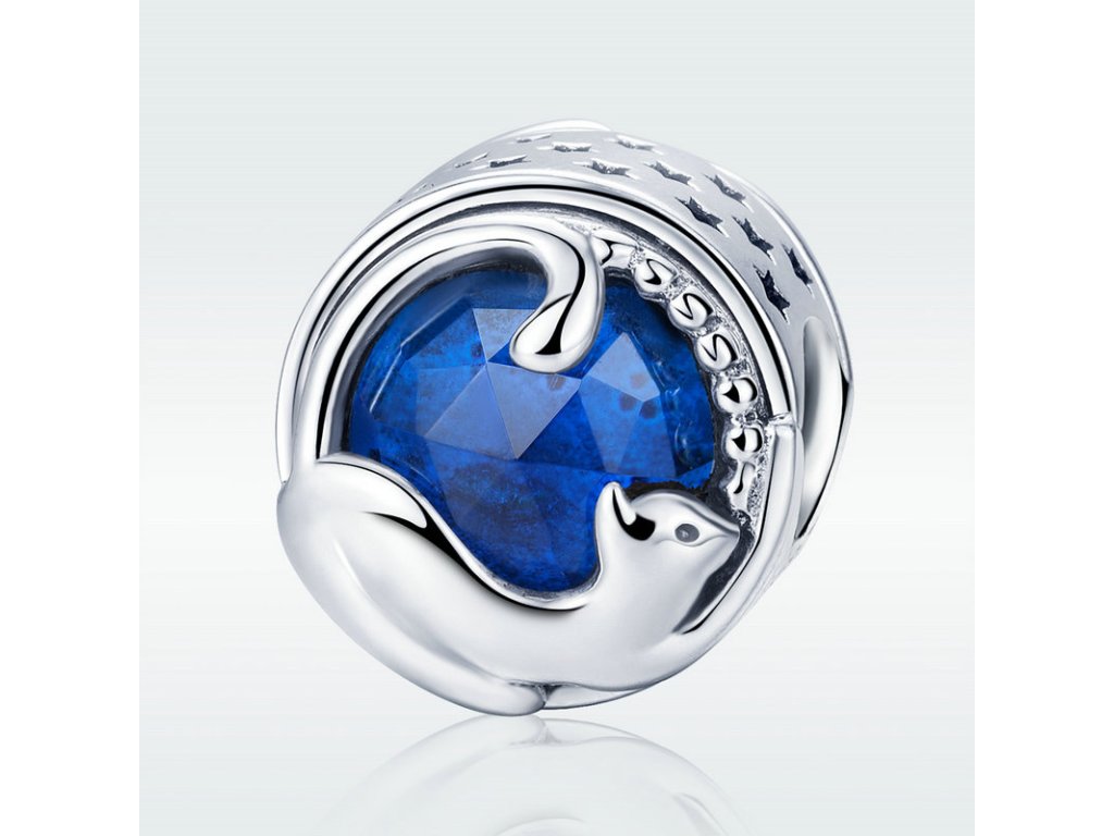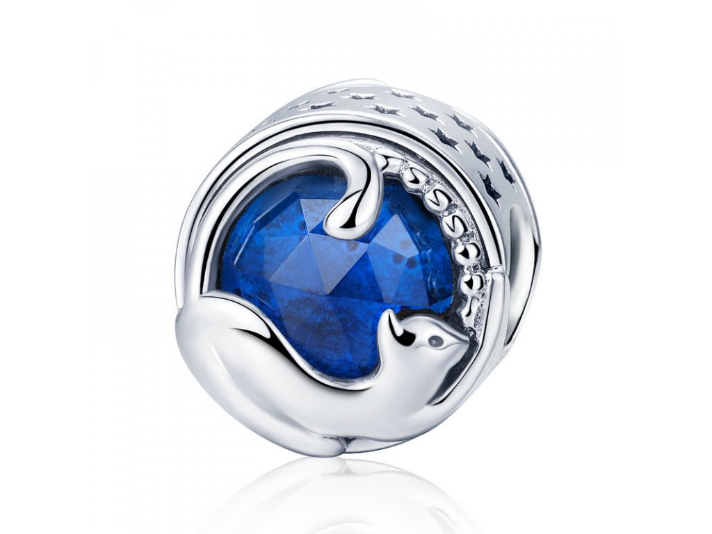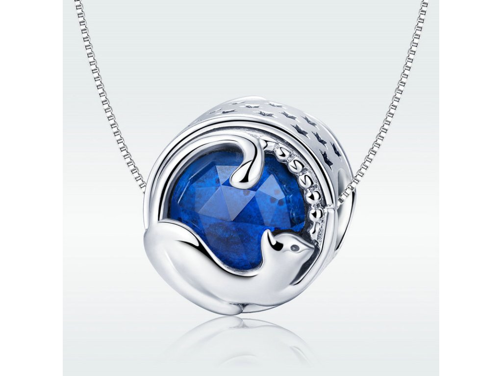 - Přívěsek v designu hravé kočky zdobený třpytivým zirkonem.