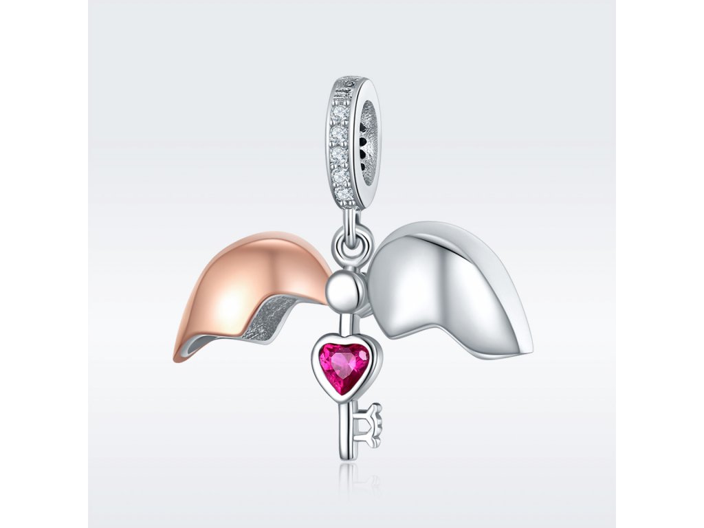 - Luxusní a propracovaný stříbrný visací přívěsek v designu klíče k mému srdci zdobený zirkony.