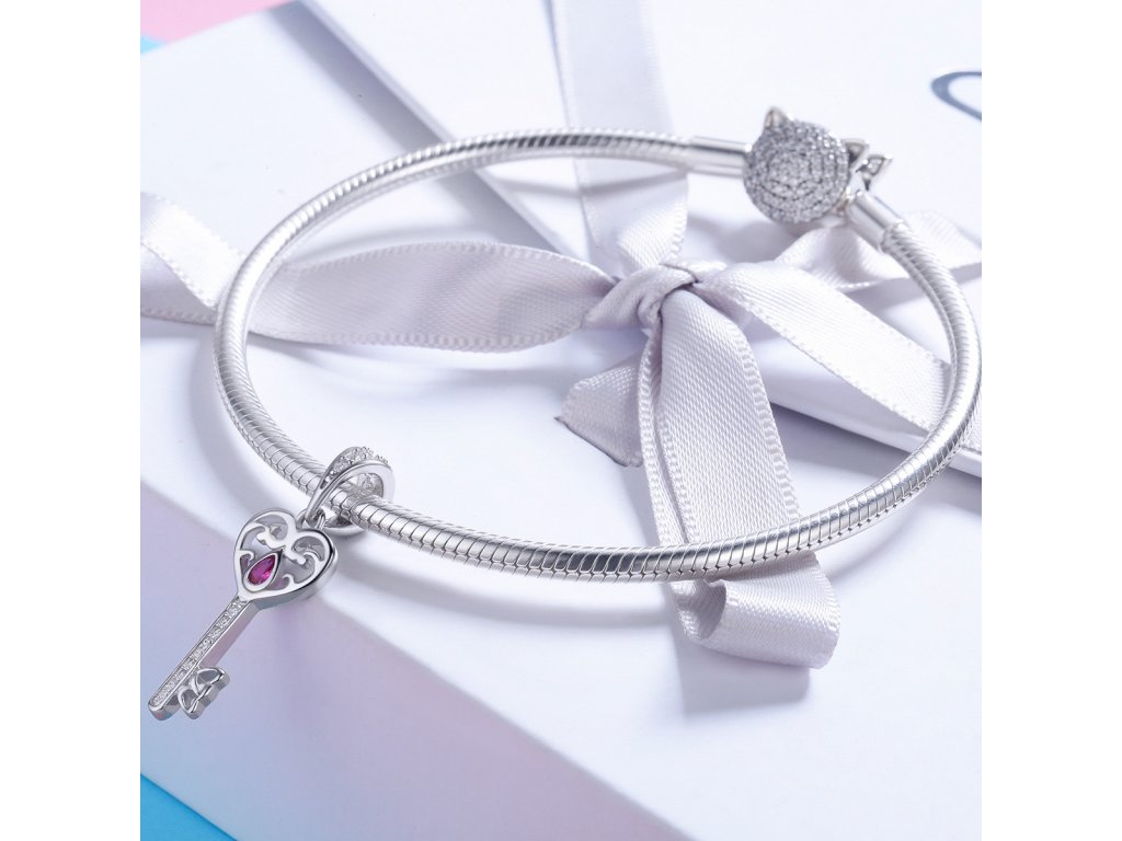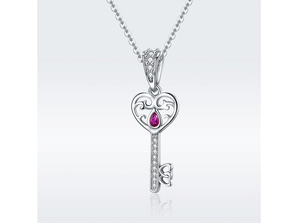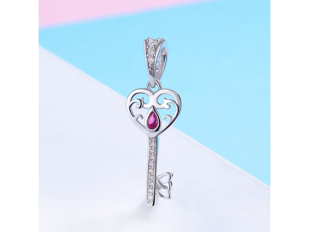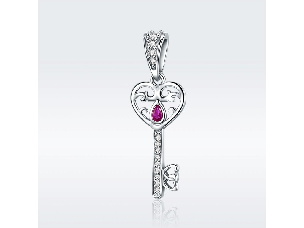 - Přívěsek v designu Klíče k srdci zdobeného třpytivými zirkony.
