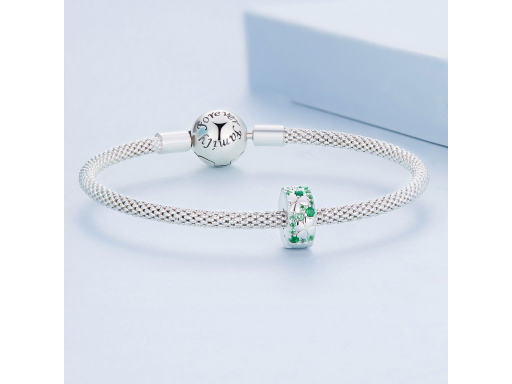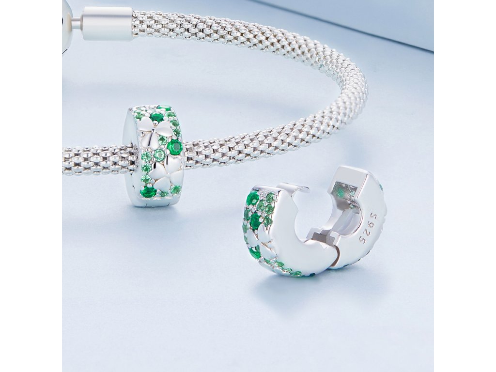 - Stříbrný klip přívěsek čtyřlístek pro štěstí zdobený zirkony