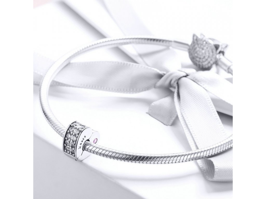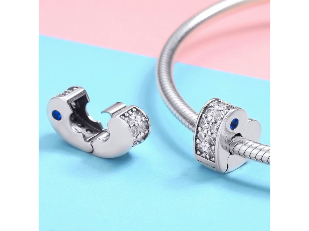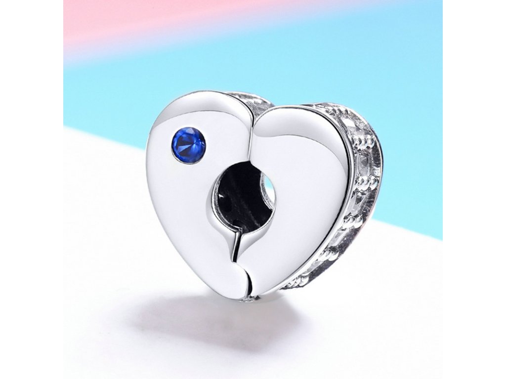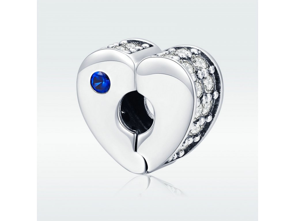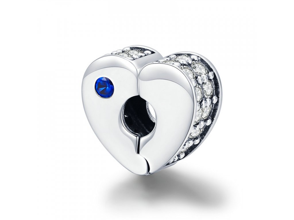 Luxusní a propracovaný stříbrný klip/přívěsek v designu třpytivého srdce zdobený zirkony a glazurou.