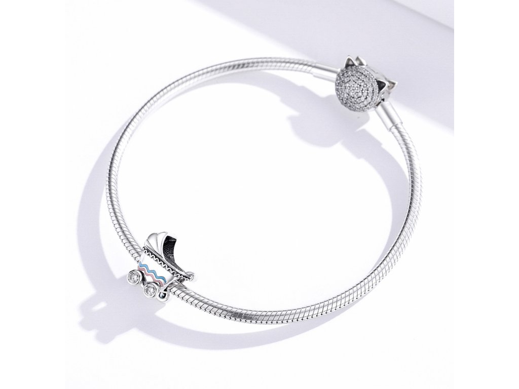 - Nejsilnější pouto na světě je mezi matkou a dítětem. Tento krásný stříbrný šperk v designu kočárku pro miminko na Vašem náramku Vám bude mateřství neustále připomínat. Originální design přívěsku, kvalitní zpracování a materiál, ručně dohotovené.
