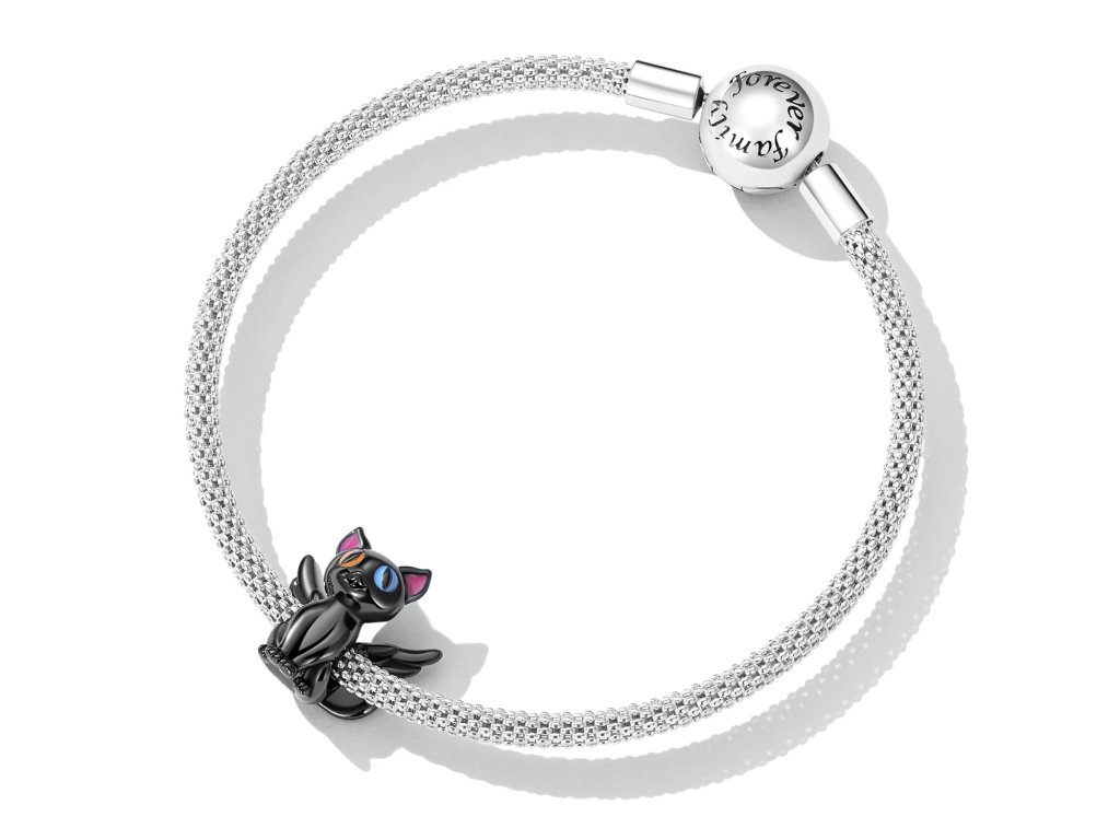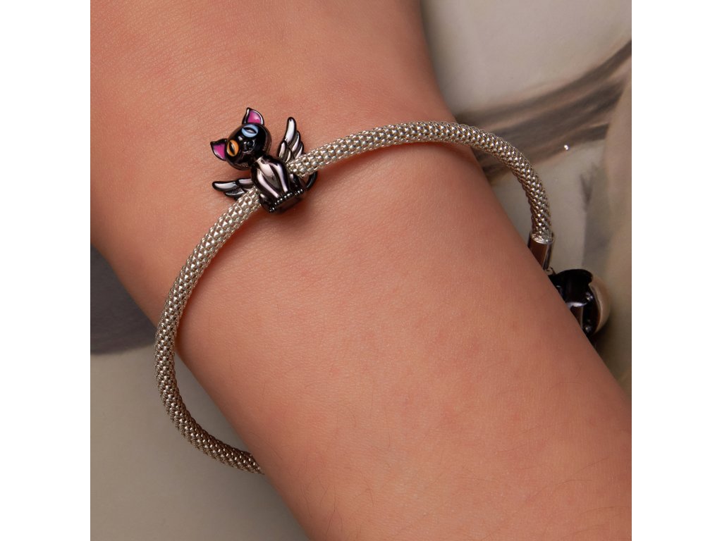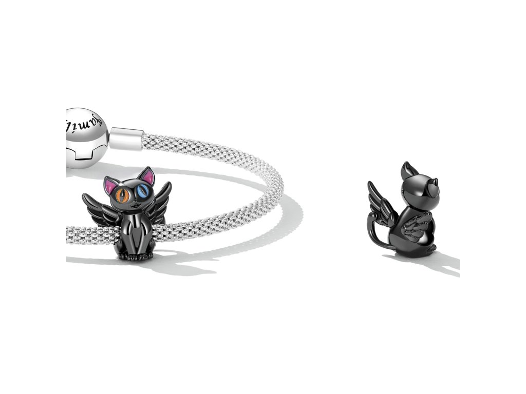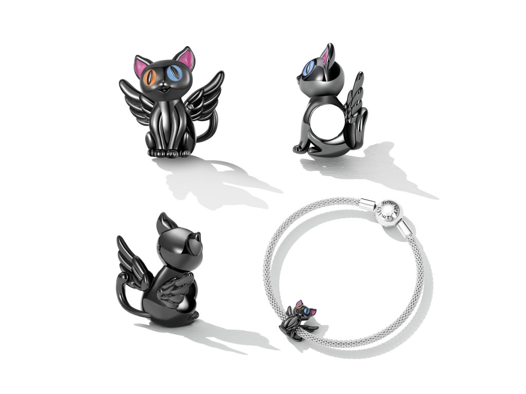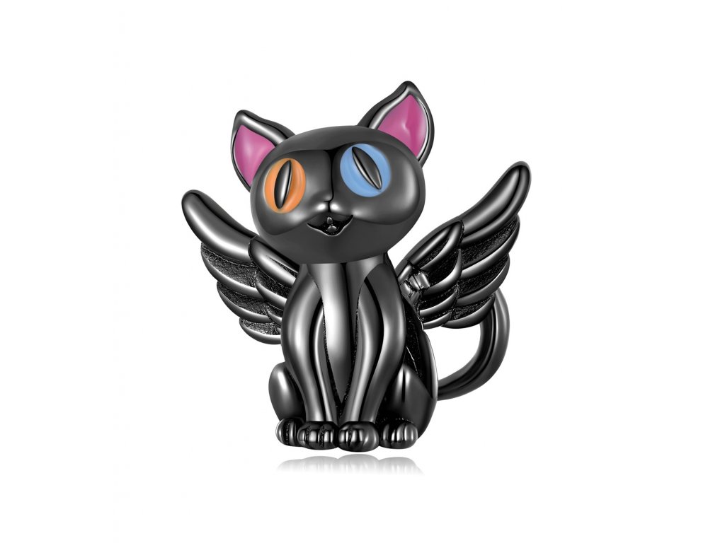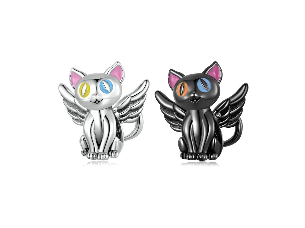 - Stříbrný přívěsek v designu kočky s andělskými křídly zdobený ručně nanášenou barevnou glazurou. Originální design přívěsku, kvalitní zpracování a materiál, ručně dohotovené.