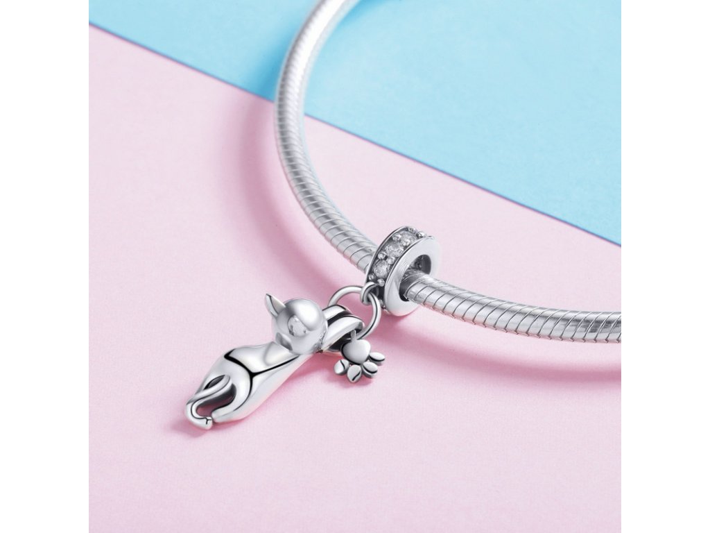 Elenys stříbrný přívěsek Kočka s přívěskem packa tlapka