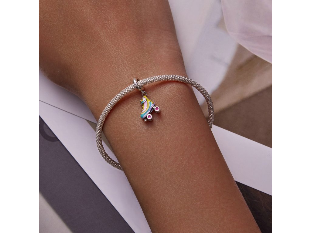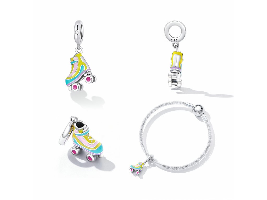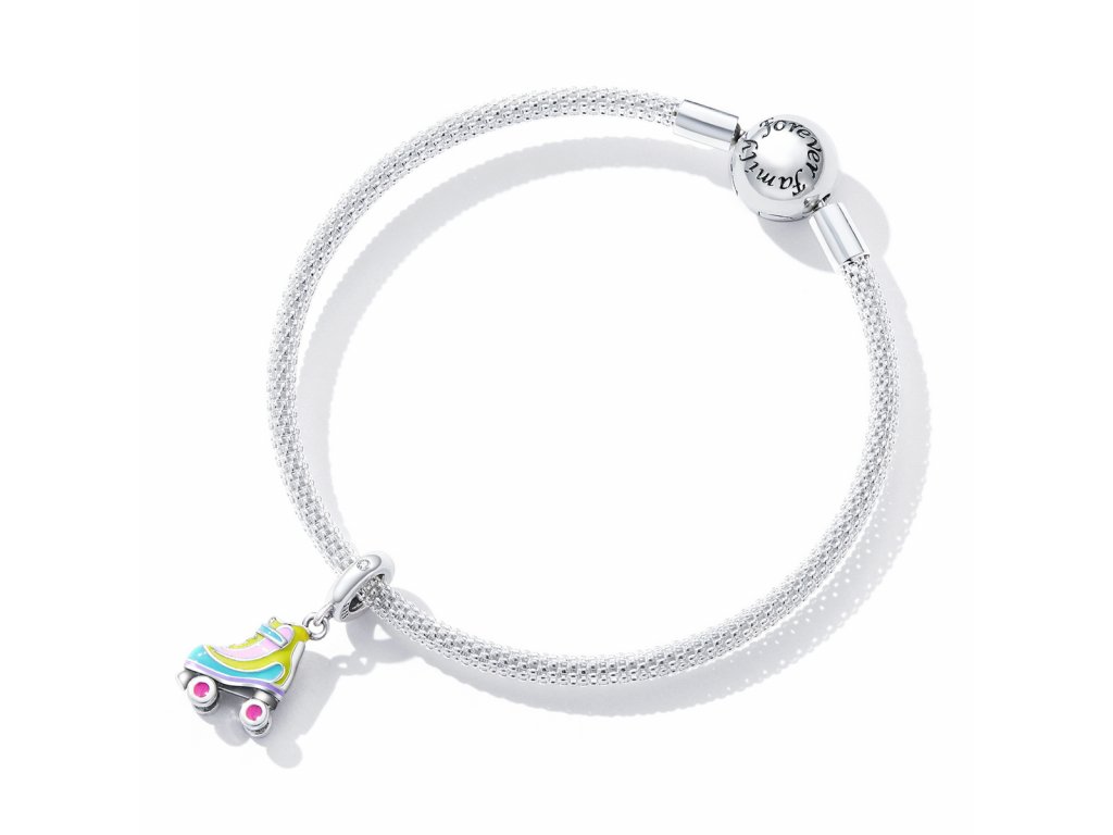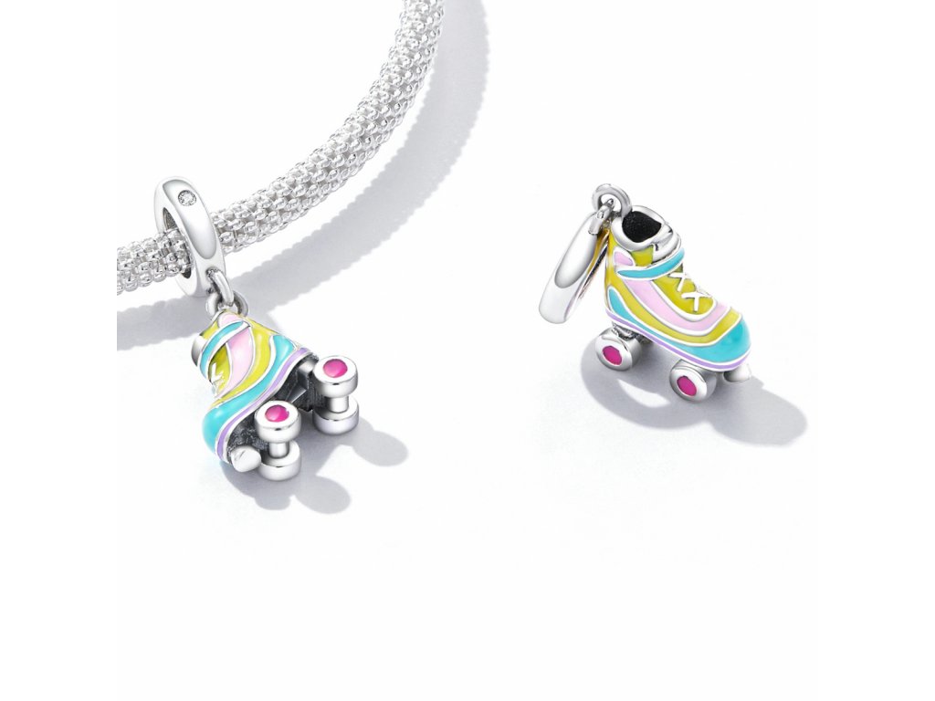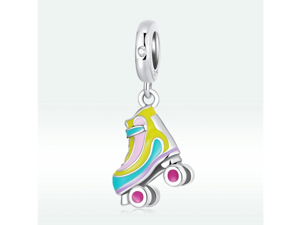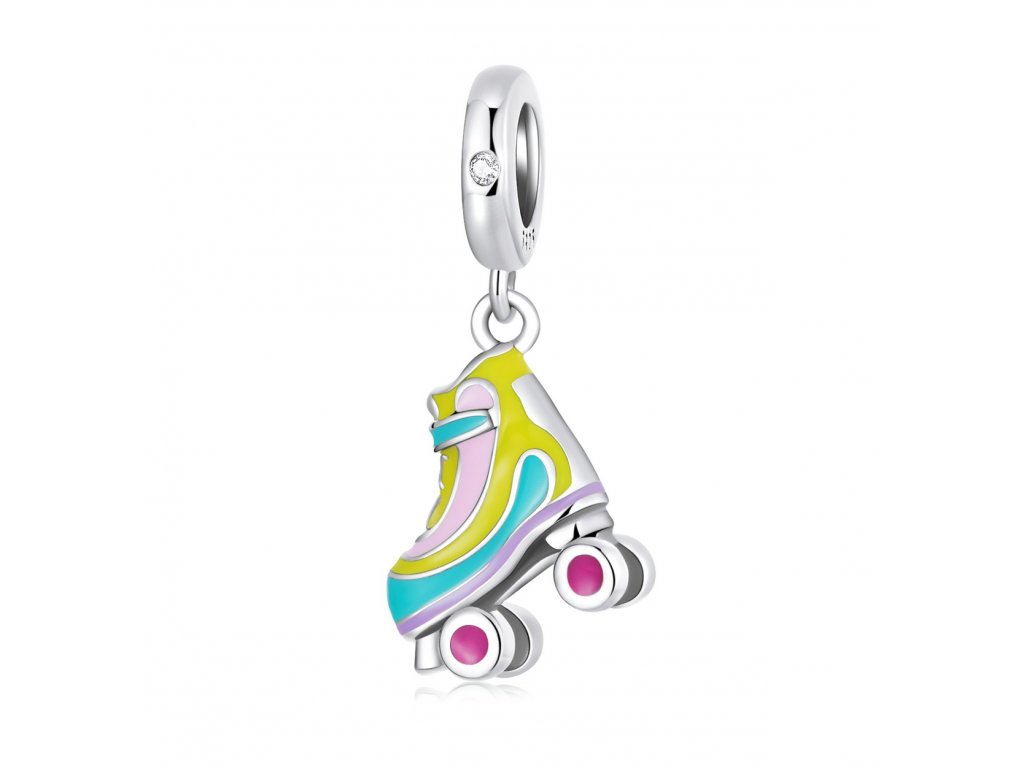 - Stříbrný visací přívěsek v designu kolečkové brusle zdobené třpytivým čirým zirkonem a ručně nanášenou barevnou glazurou. Originální design přívěsku, kvalitní zpracování a materiál, ručně dohotovené.