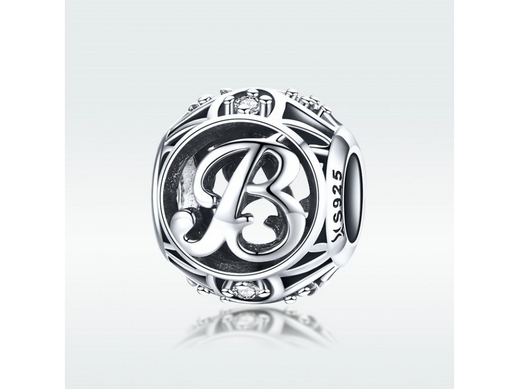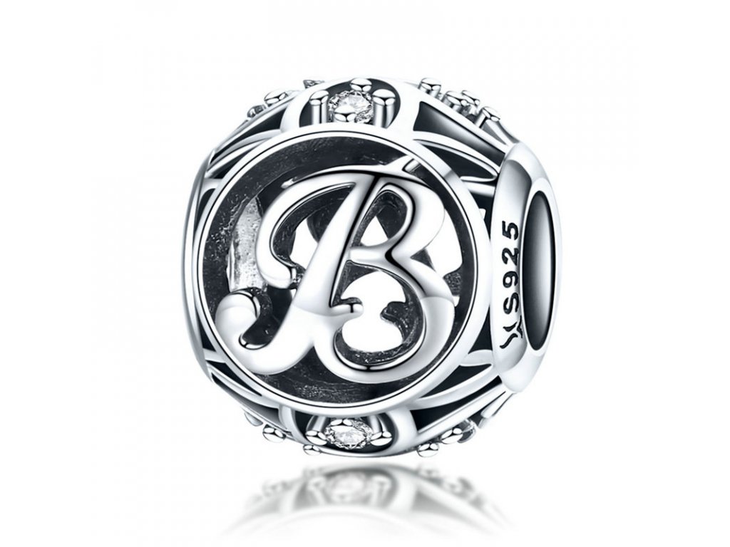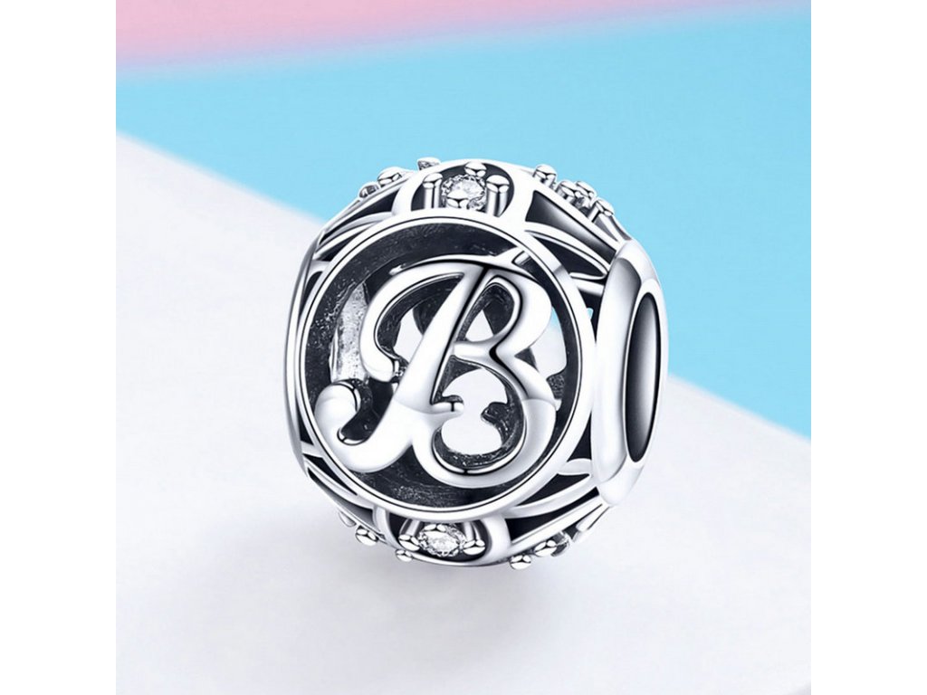 - Luxusní a propracovaný stříbrný přívěsek v designu písmenka "B" zdobený zirkony a smaltem.