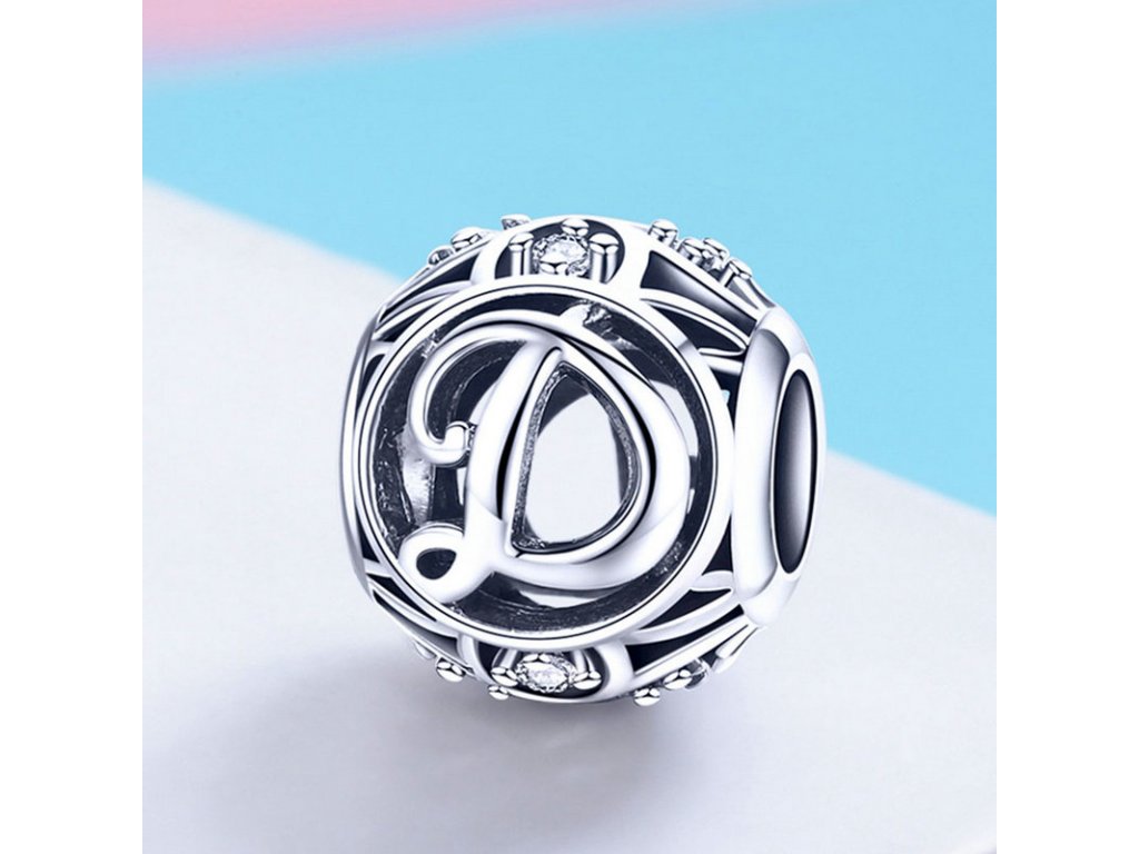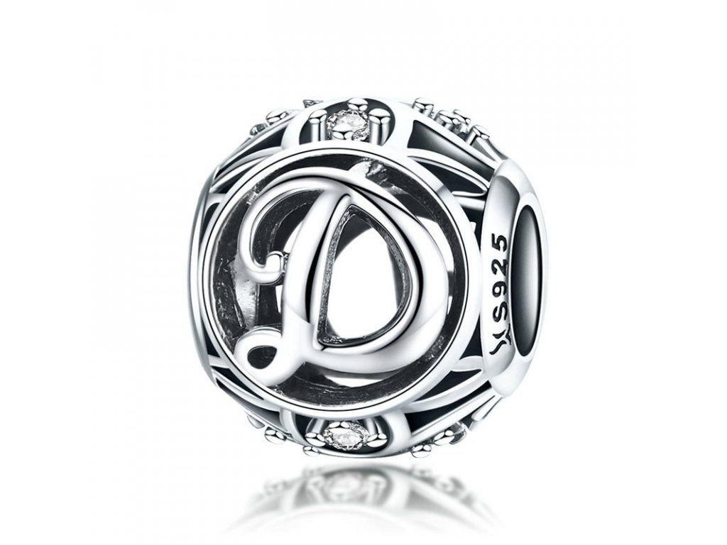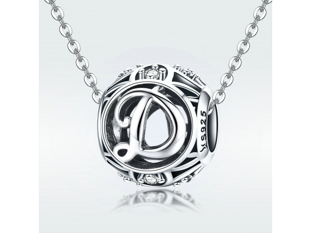 - Luxusní a propracovaný stříbrný přívěsek v designu písmenka "D" zdobený zirkony a smaltem.