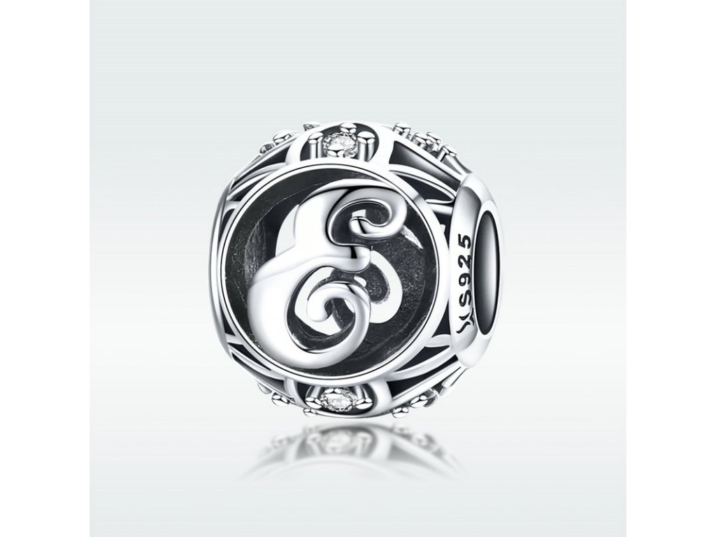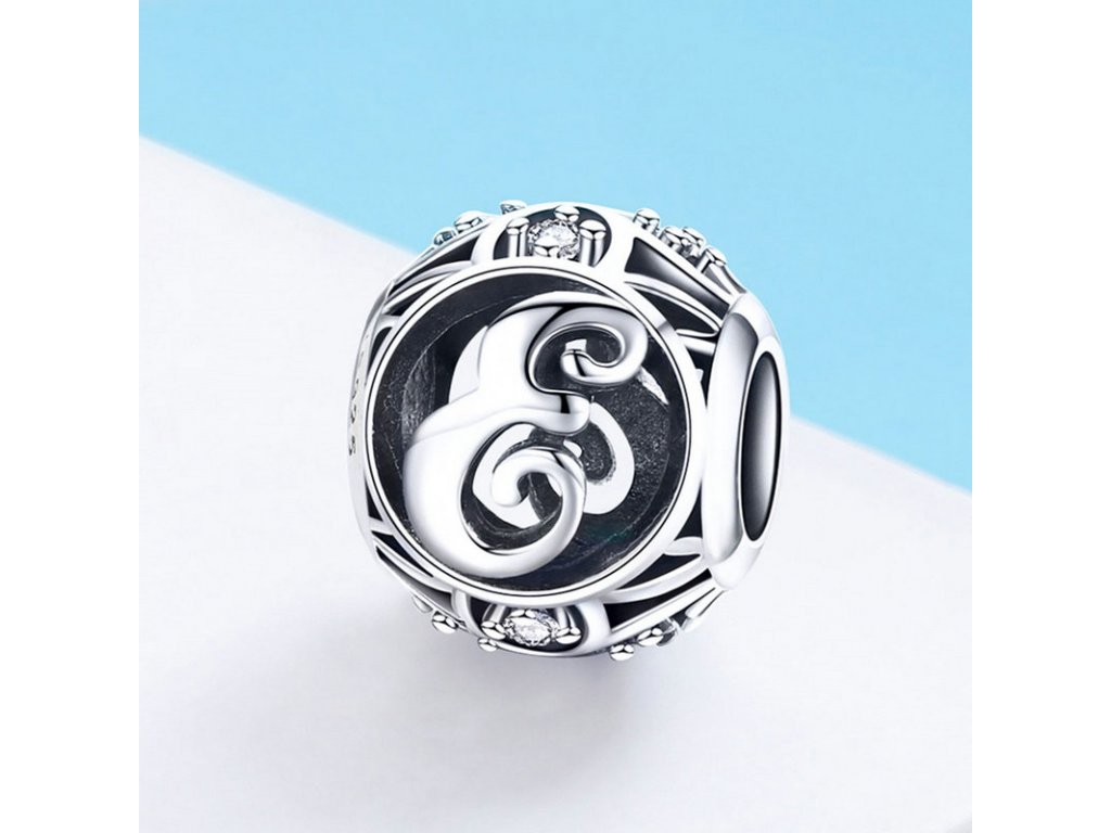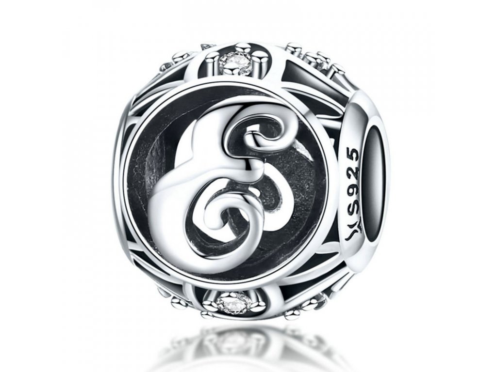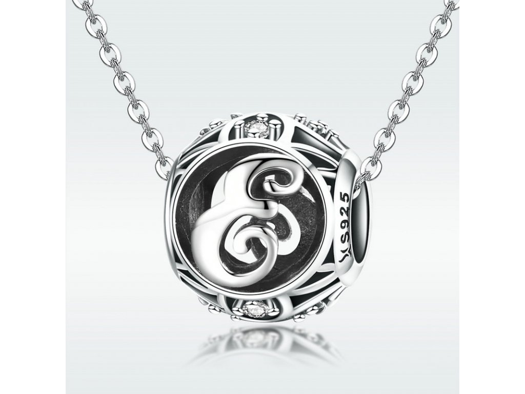 - Luxusní a propracovaný stříbrný přívěsek v designu písmenka "E" zdobený zirkony a smaltem.