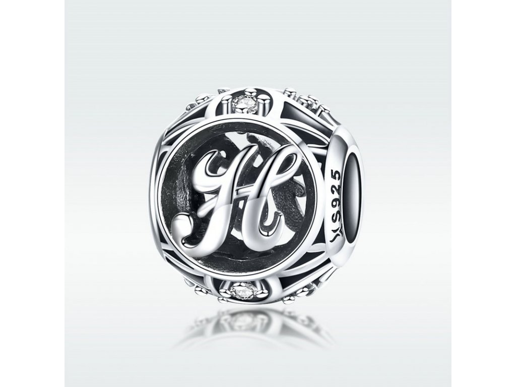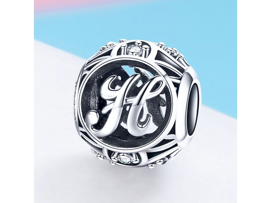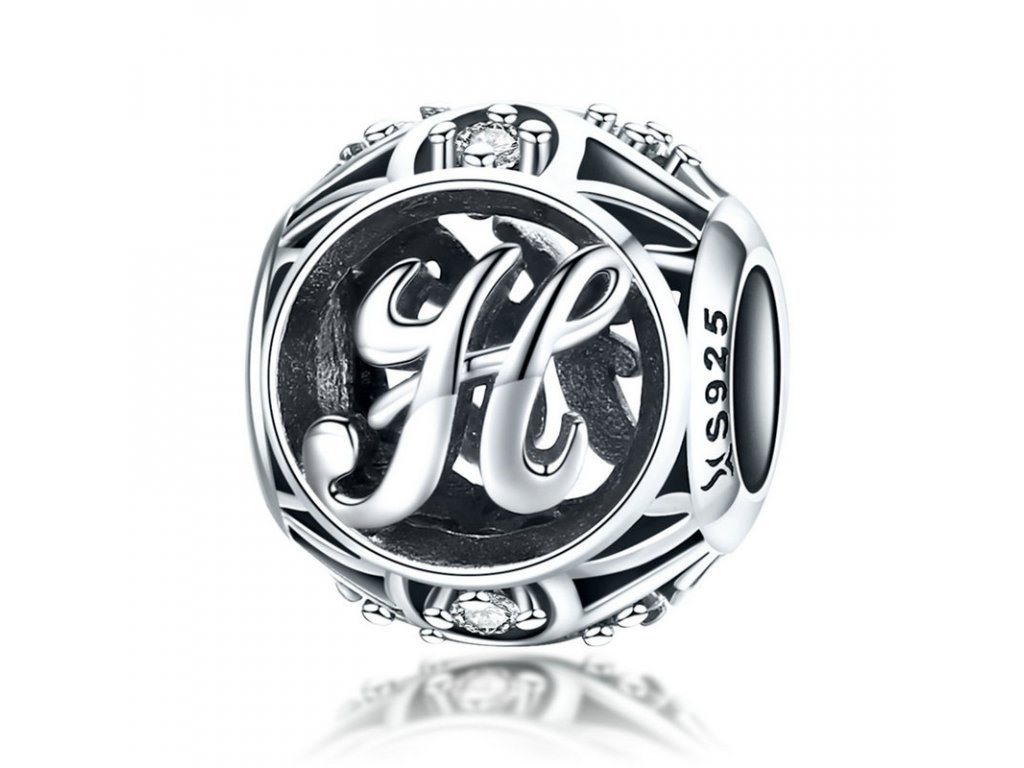 - Luxusní a propracovaný stříbrný přívěsek v designu písmenka "H" zdobený zirkony a smaltem.