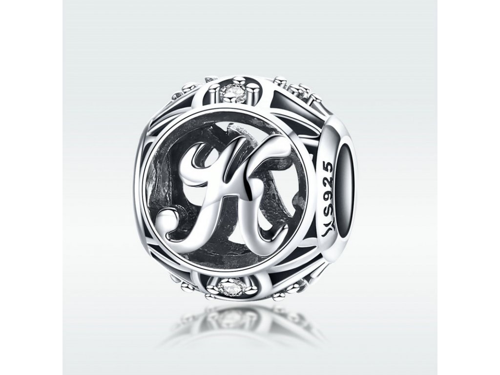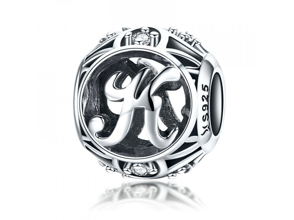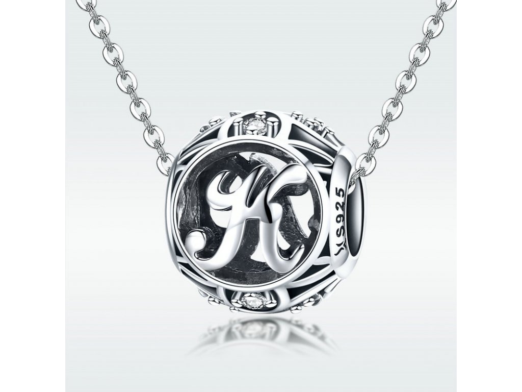 - Luxusní a propracovaný stříbrný přívěsek v designu písmenka "K" zdobený zirkony a smaltem.