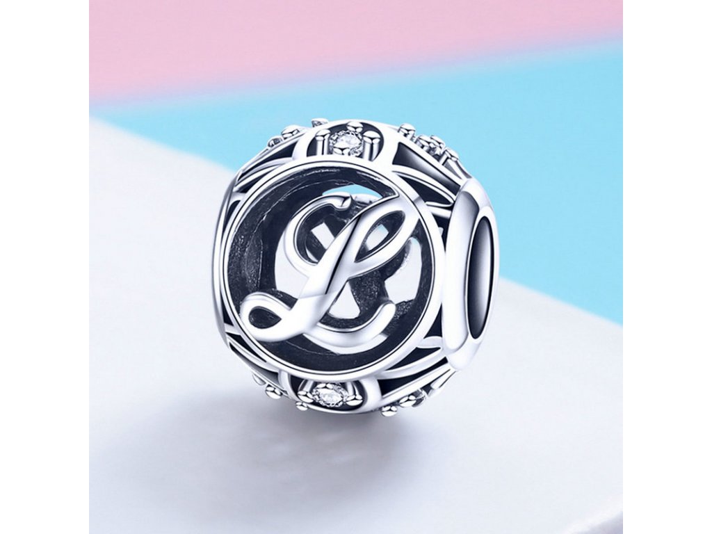 - Luxusní a propracovaný stříbrný přívěsek v designu písmenka "L" zdobený zirkony a smaltem.