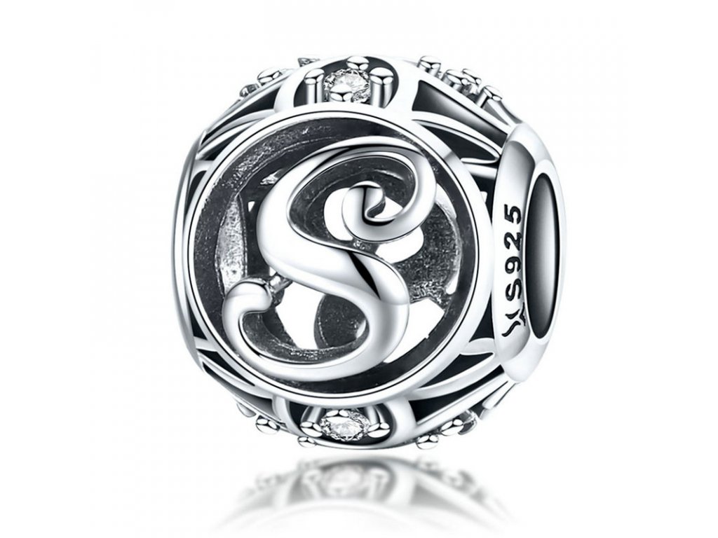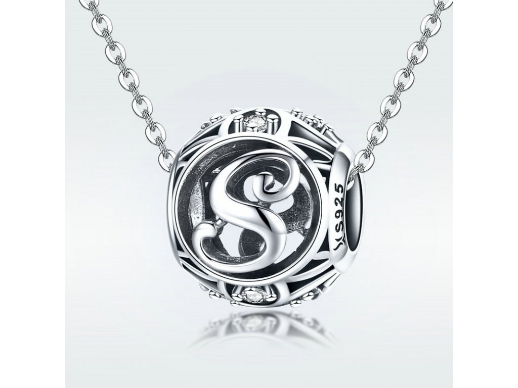 - Luxusní a propracovaný stříbrný přívěsek v designu písmenka "S" zdobený zirkony a smaltem.