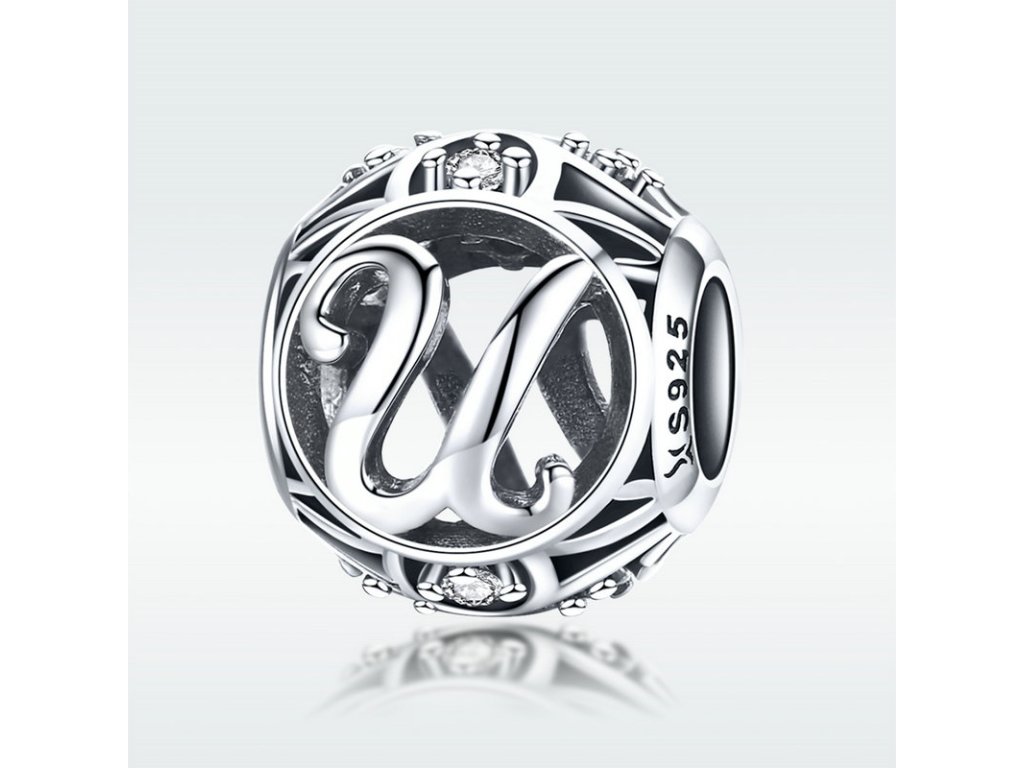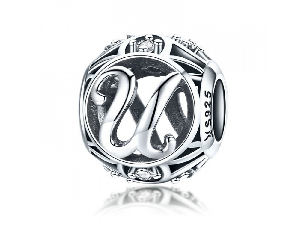 - Luxusní a propracovaný stříbrný přívěsek v designu písmenka "U" zdobený zirkony a smaltem.