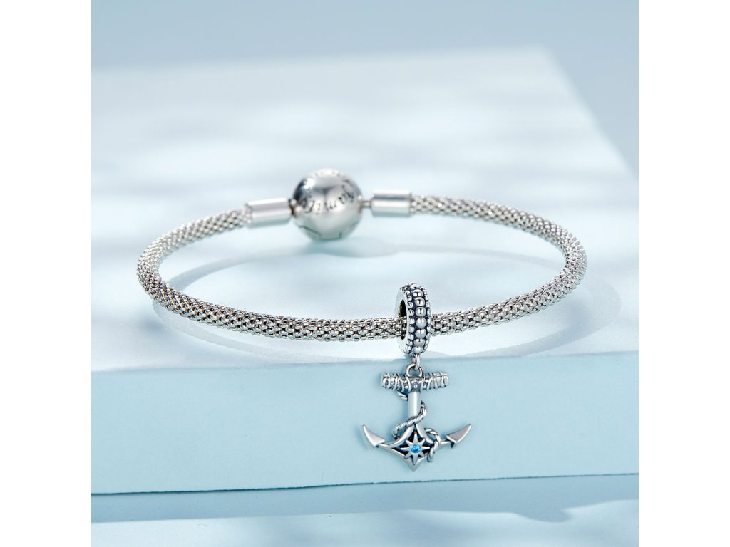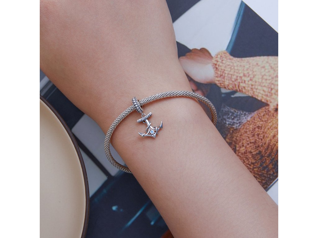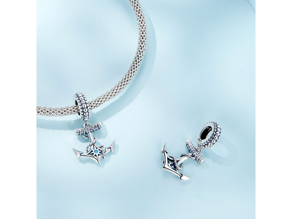 - Stříbrný visací přívěsek v designu kotvy