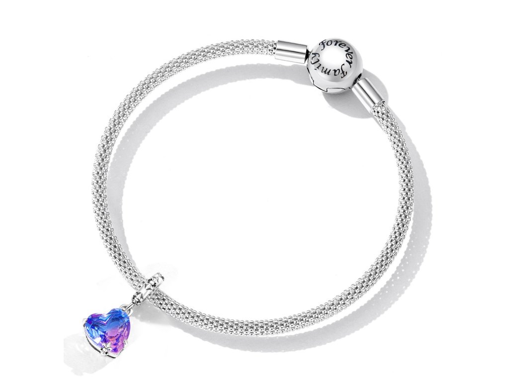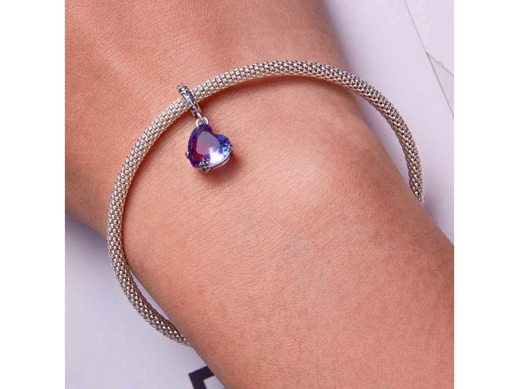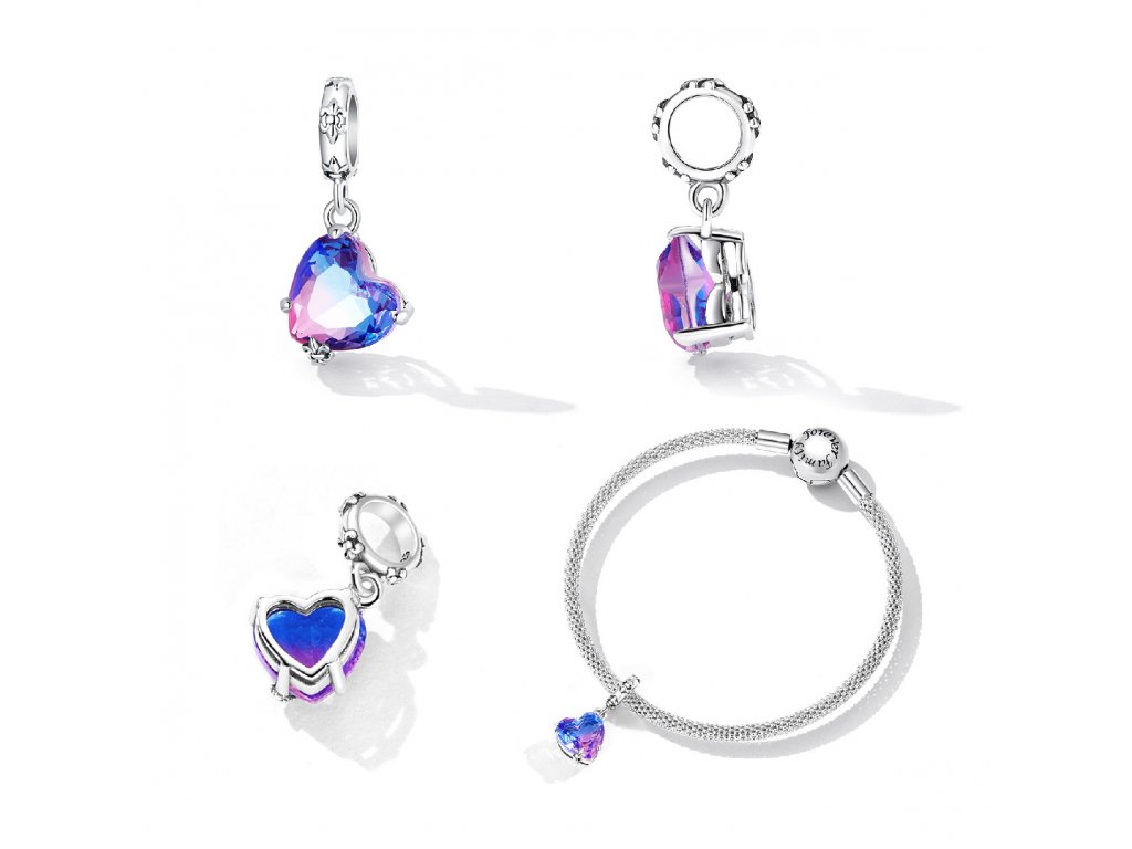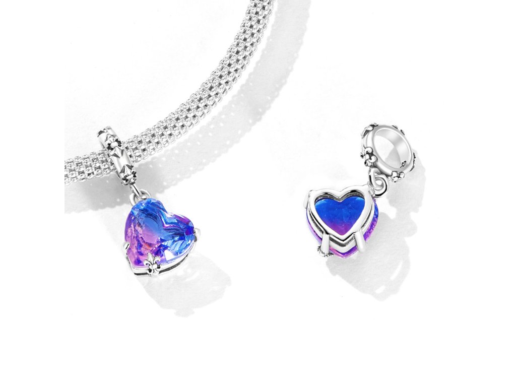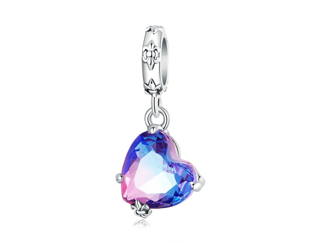 - Stříbrný visací přívěsek v designu kouzelného srdce zdobeného velkým broušeným barevným sklem. Originální design přívěsku, kvalitní zpracování a materiál, ručně dohotovené.