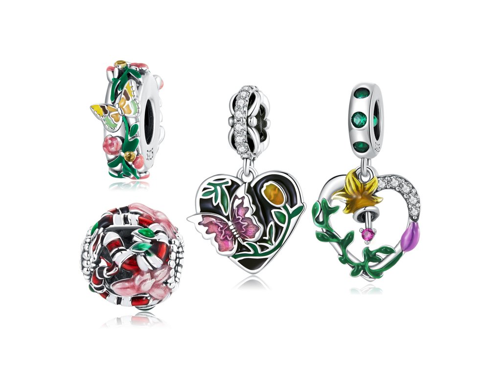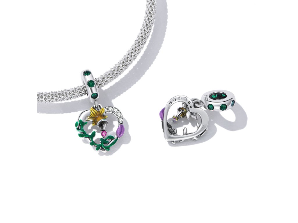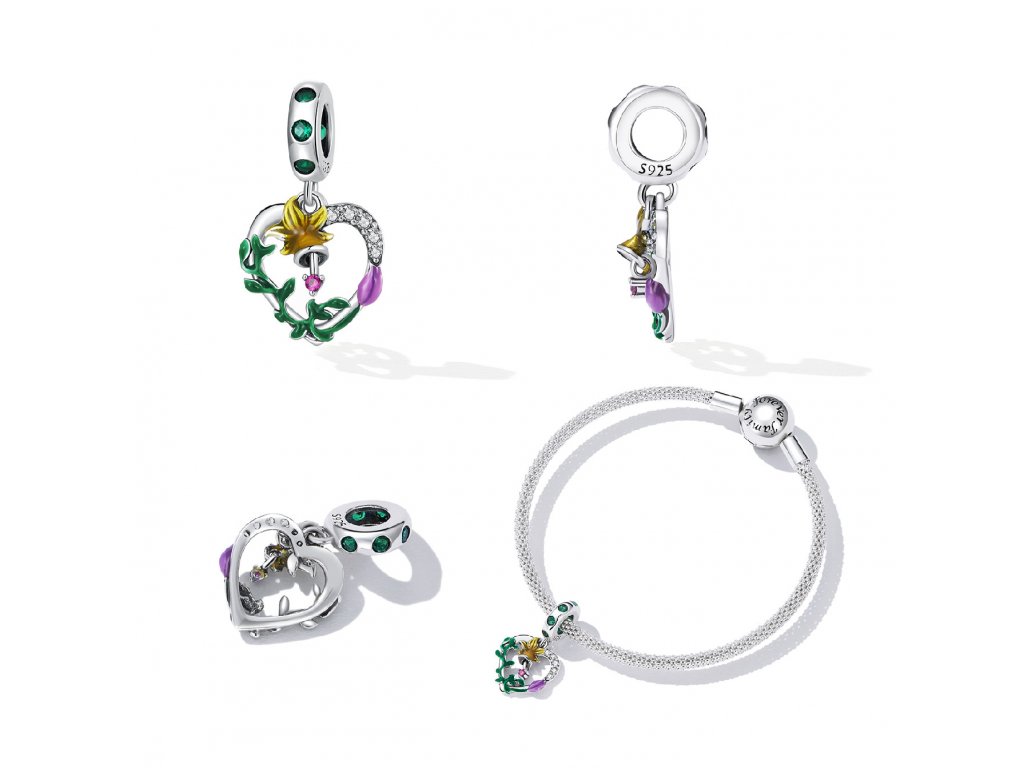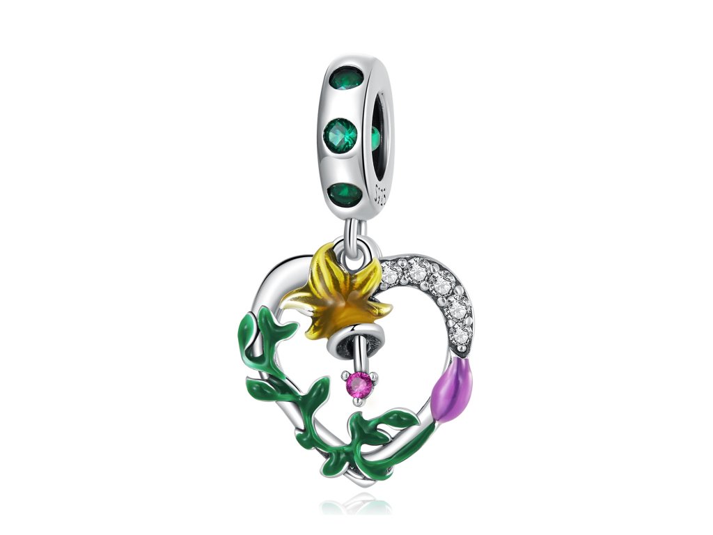 - Stříbrný visací přívěsek v designu krásné přírody zdobený třpytivými zirkony a ručně nanášenou glazurou. Originální design přívěsku, kvalitní zpracování a materiál, ručně dohotovené.