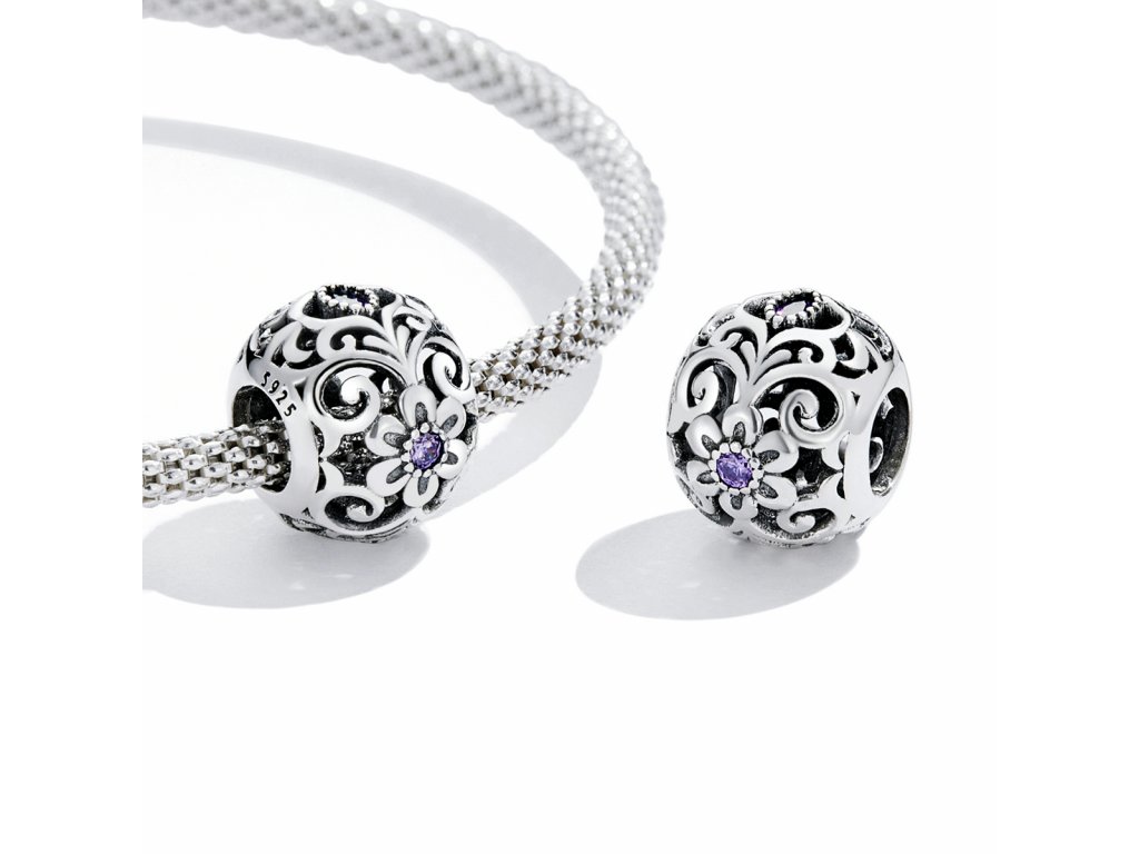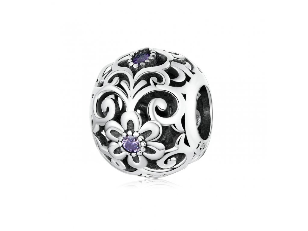- Stříbrný přívěsek / korálek v designu královské zahrady zdobený fialovými kameny v podobě zirkonů. Originální design přívěsku, kvalitní zpracování a materiál, ručně dohotovené.