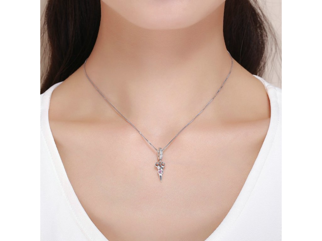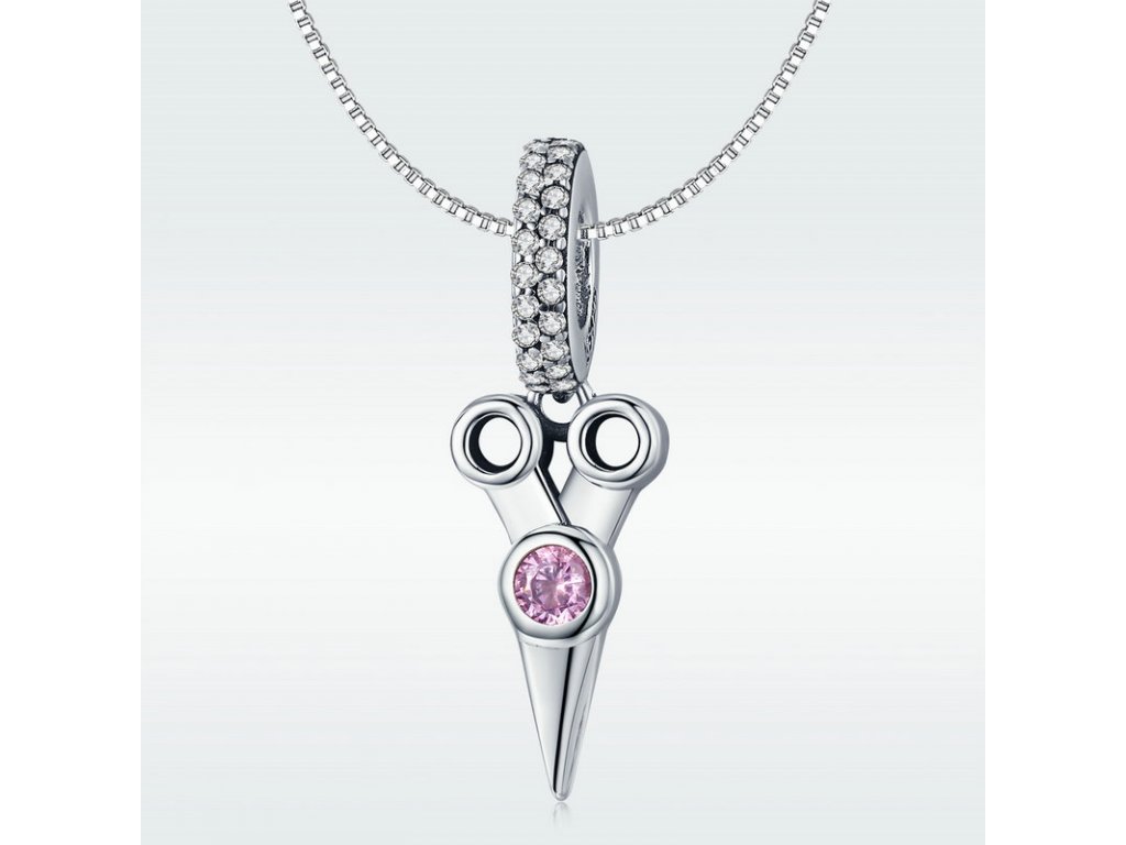 - Chcete potěšit kadeřnici či švadlenku? Tento originální visací přívěsek znázorňující kreativní nůžky je jasnou volbou. Přívěsek je dekorován nádherně se třpytícími čirými zirkony a ručně posázeným kamenem v podobě růžového zirkonu. Originální design přívěsku, kvalitní zpracování a materiál, ručně dohotovené.