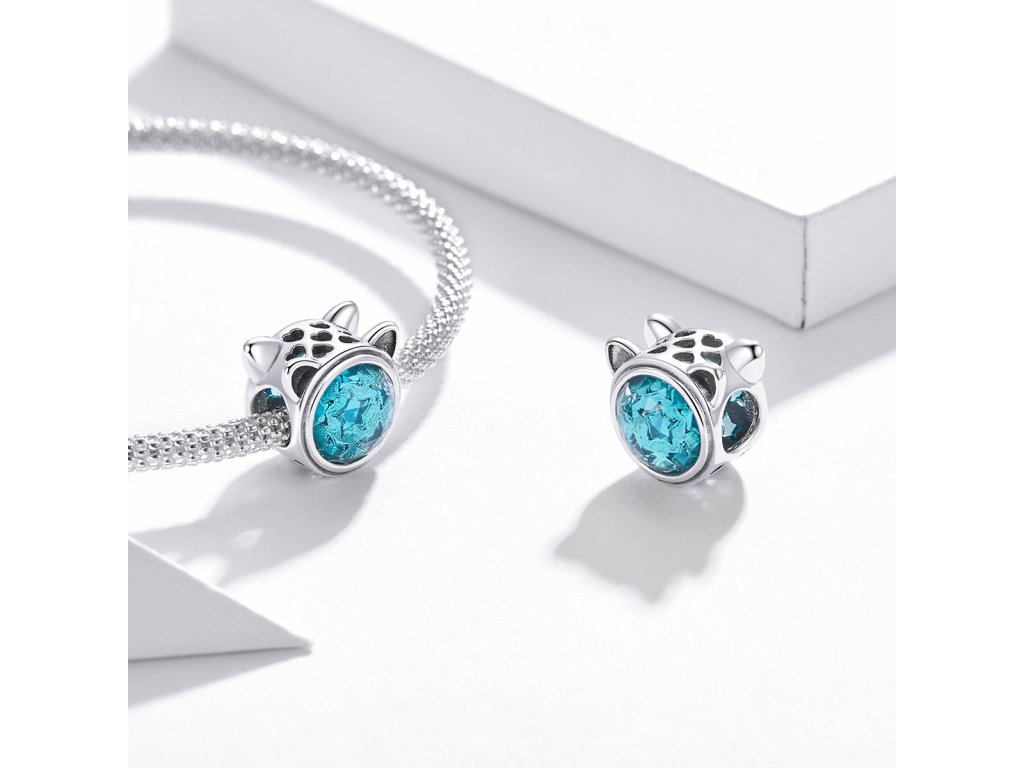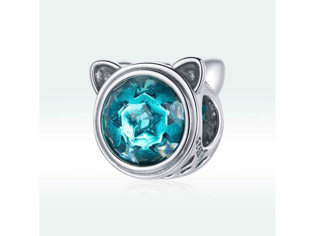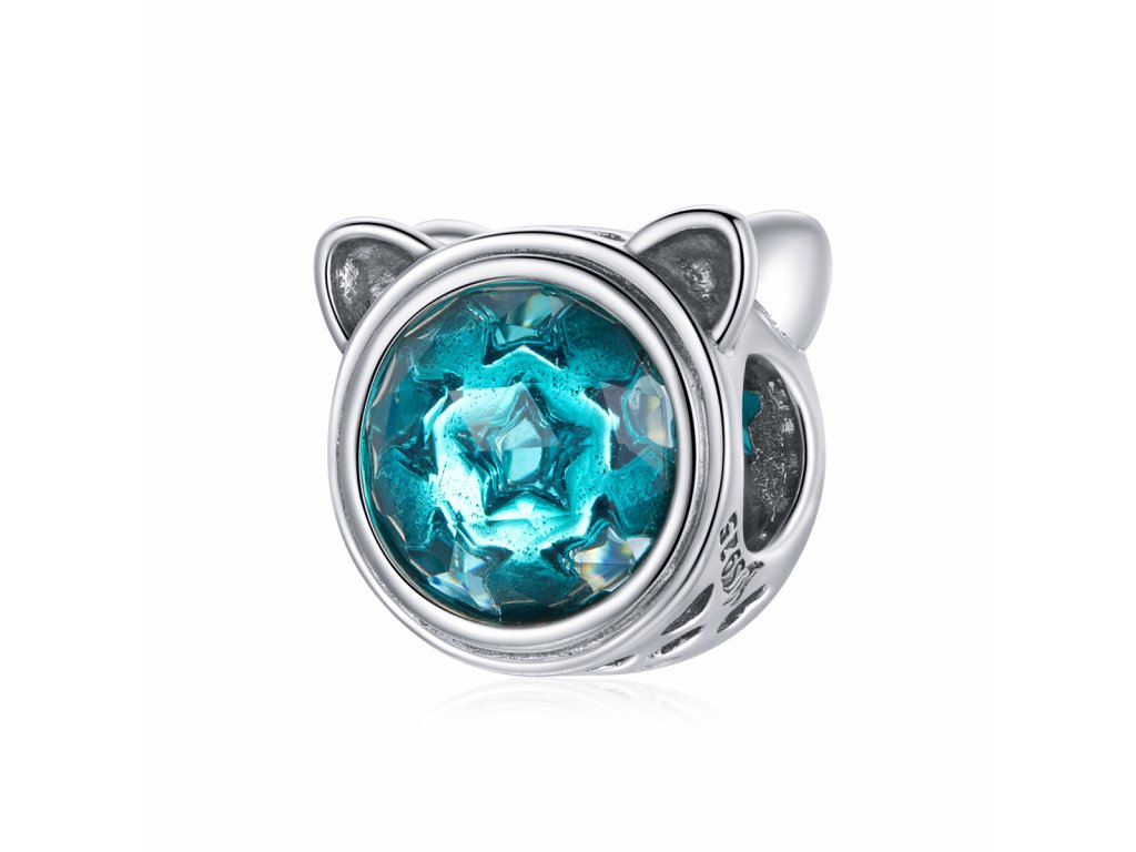 - Stříbrný přívěsek v designu Křišťálové kočky s roztomilými oušky. Je zdobený velkým tyrkysovým průzračným zirkonem s hvězdami. Přívěsek je také obohacen ručně vyřezávanými milovanými srdíčky po stranách. Originální design přívěsku, kvalitní zpracování a materiál, ručně dohotovené.