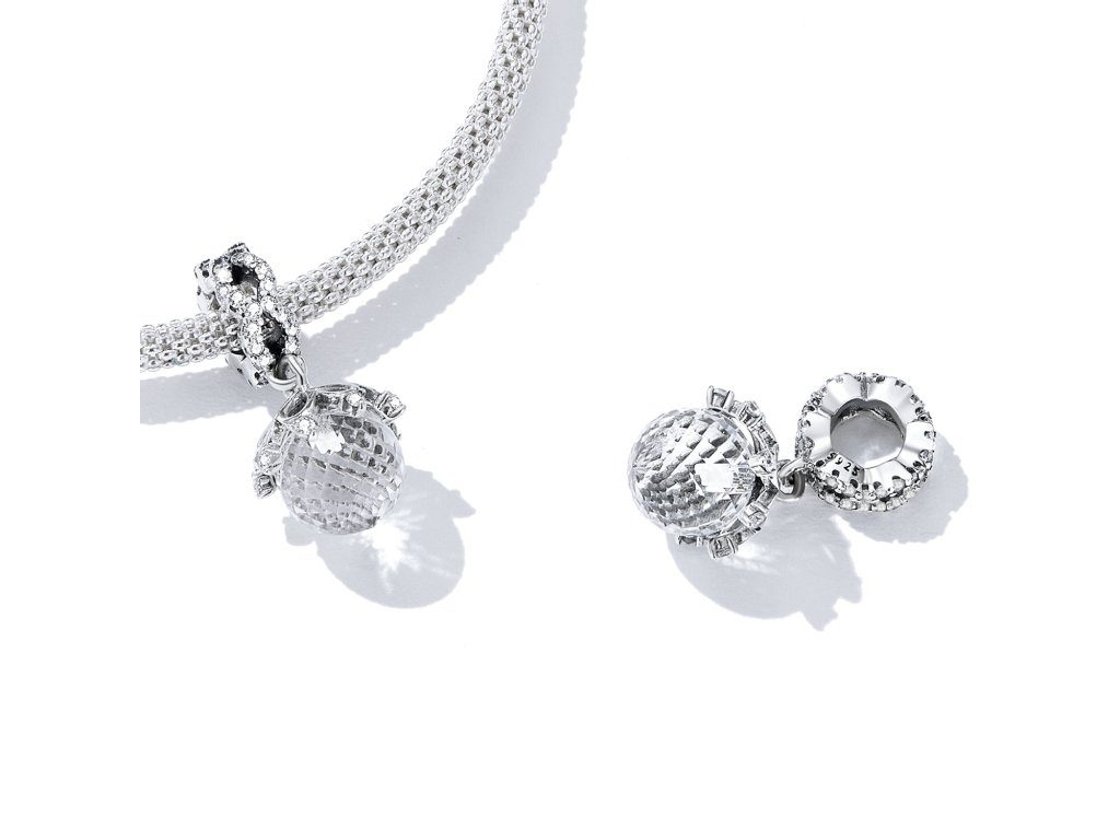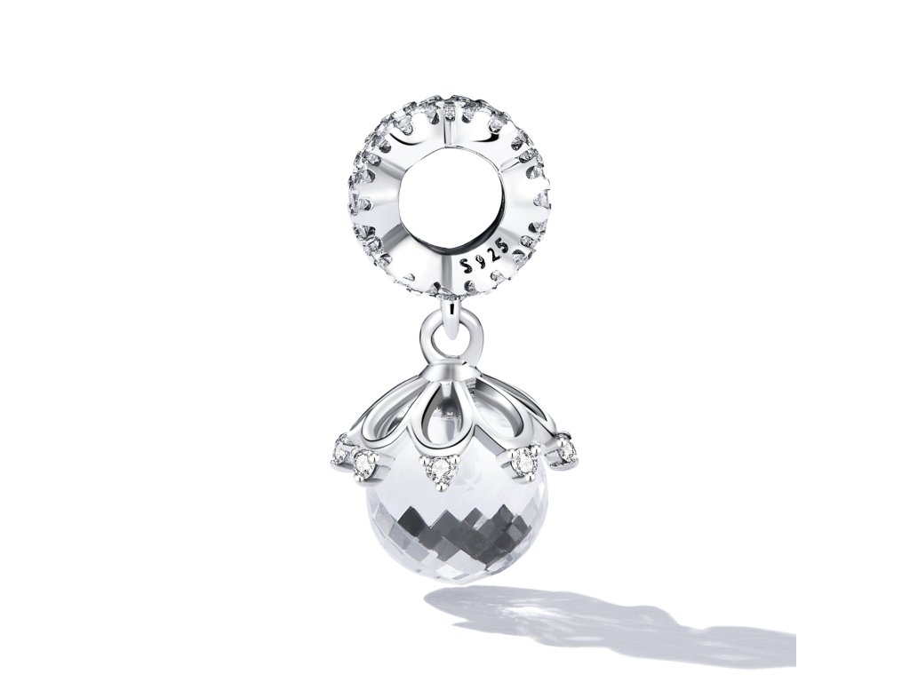 - Stříbrný visací elegantní přívěsek zdobený čirými třpytivými zirkony a velkým průzračným broušeným sklem ve tvaru koule. Originální design přívěsku, kvalitní zpracování a materiál, ručně dohotovené.