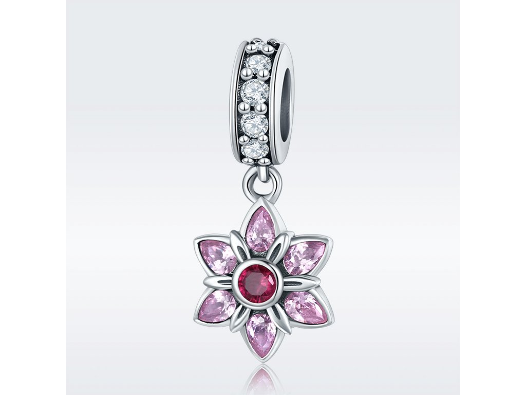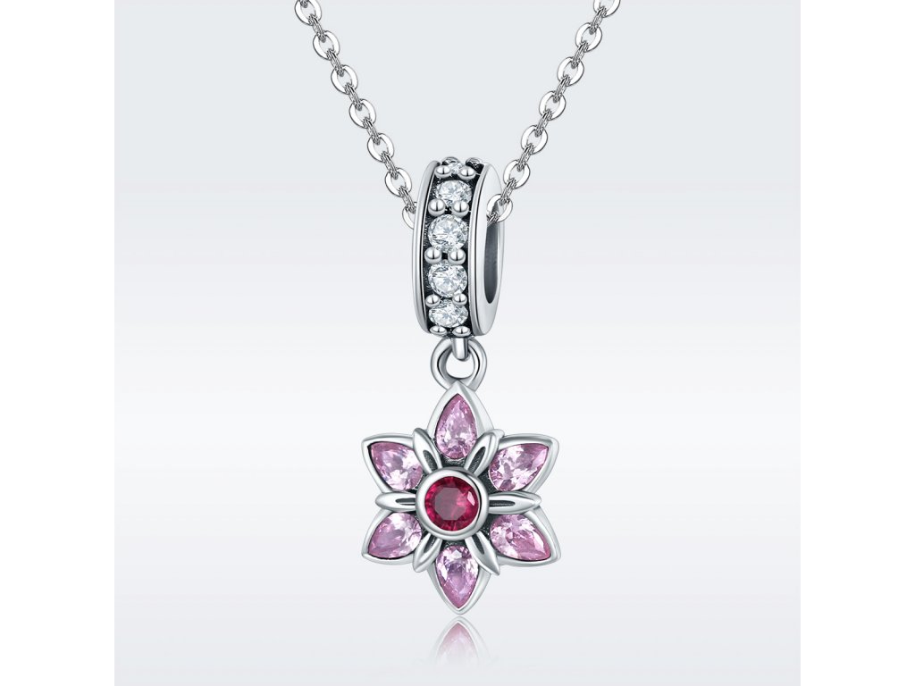 - Luxusní a propracovaný stříbrný visací přívěsek v designu krystalického květu zdobený zirkony.