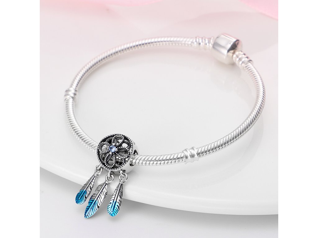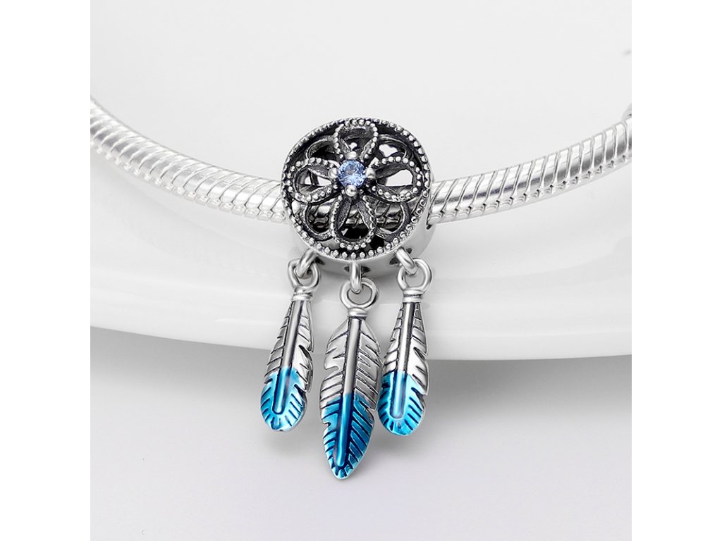- Stříbrný přívěsek v designu lapače snů