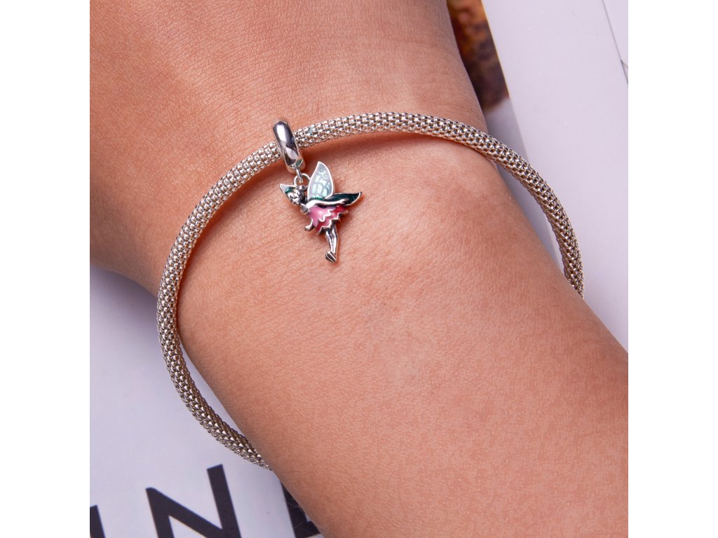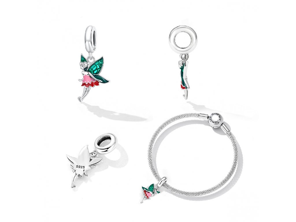 - Stříbrný visací přívěsek v designu krásné lesní víly zdobené ručně nanášenou růžovou, červenou a zelenou lesklou glazurou. Originální design přívěsku, kvalitní zpracování a materiál, ručně dohotovené.