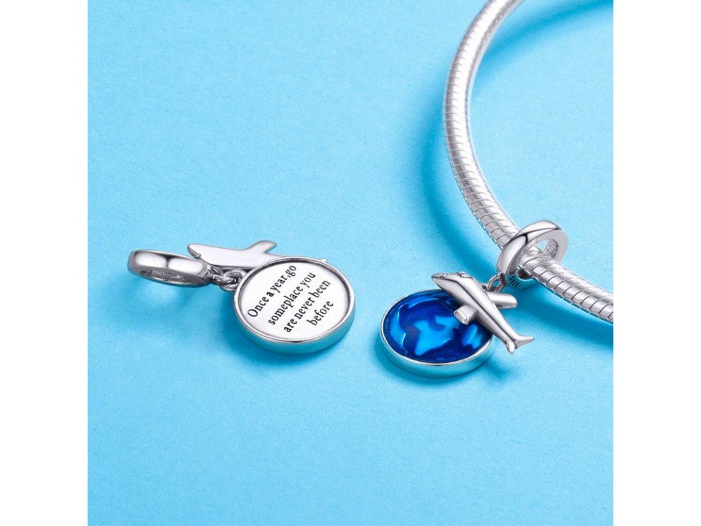 - Luxusní a propracovaný stříbrný přívěsek v designu letem světem zdobený glazurou.