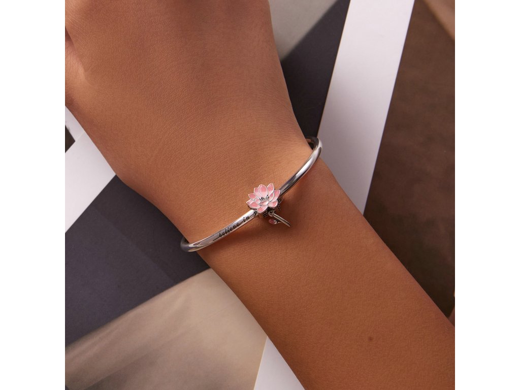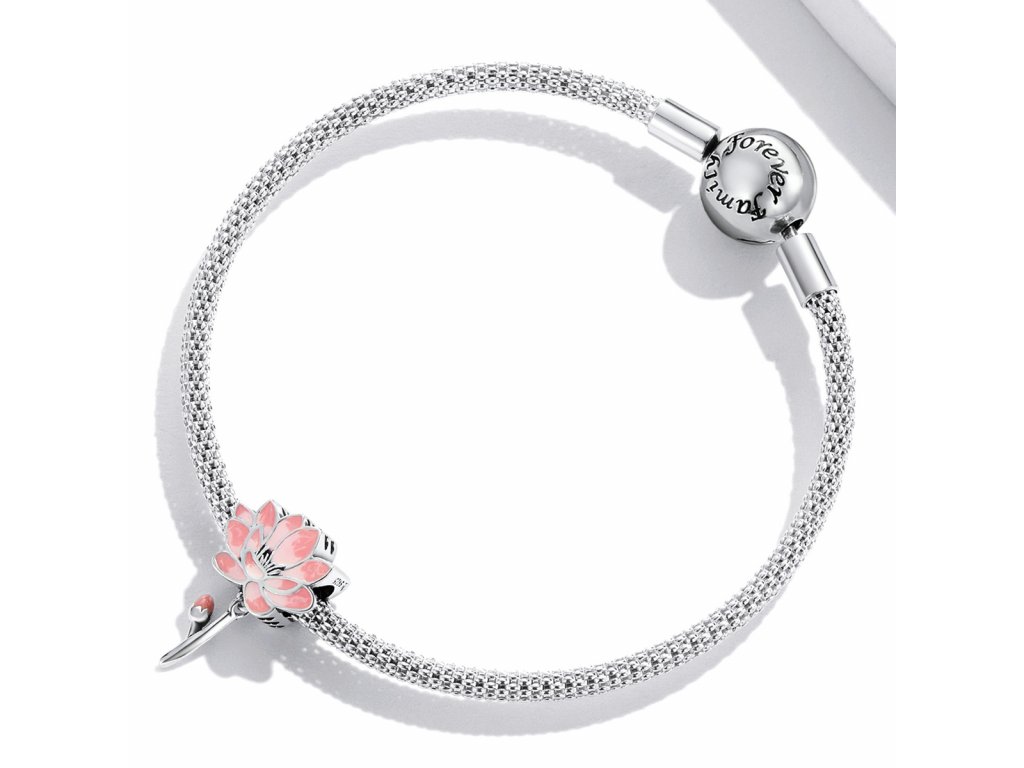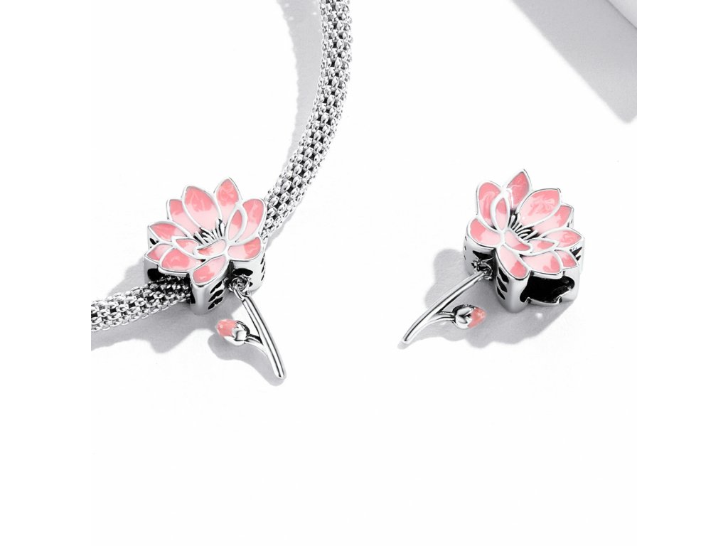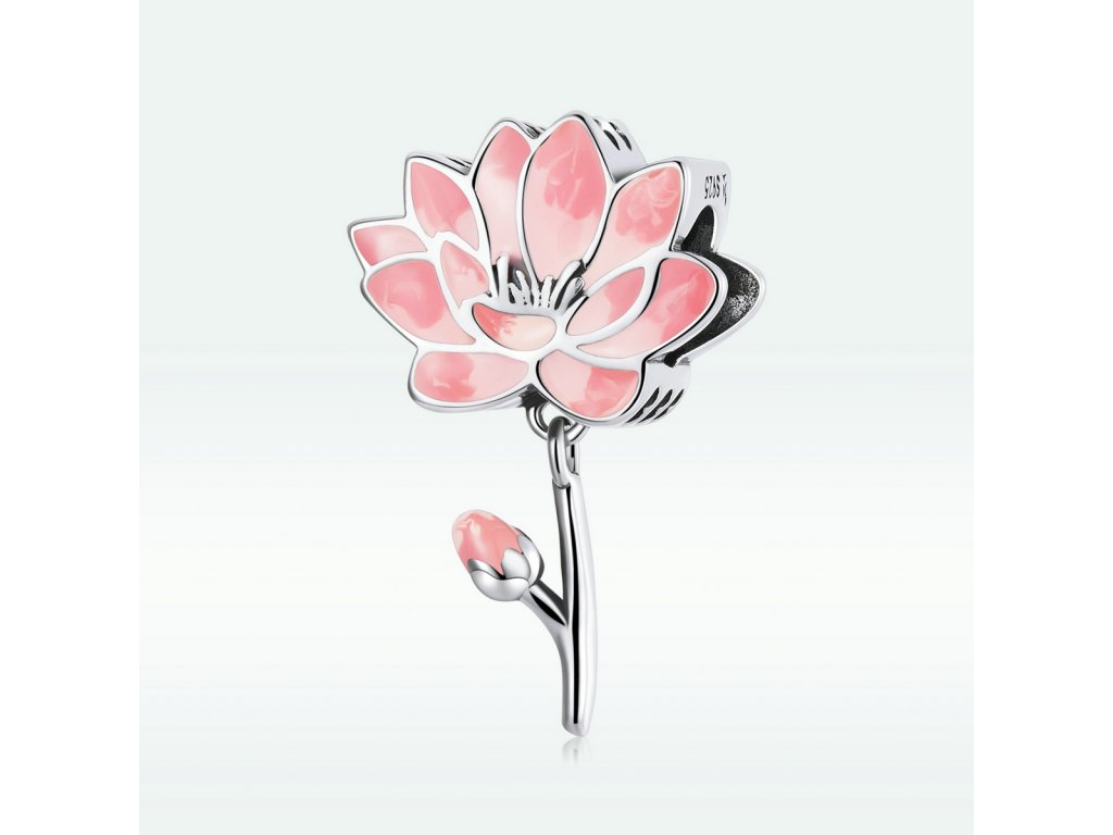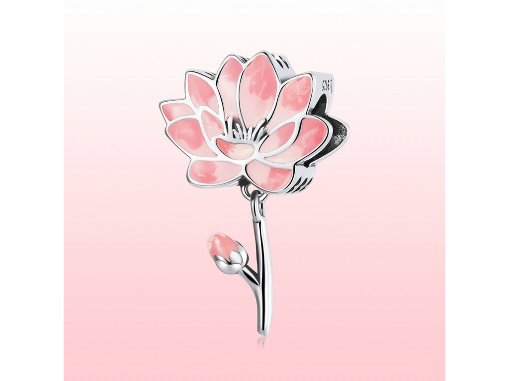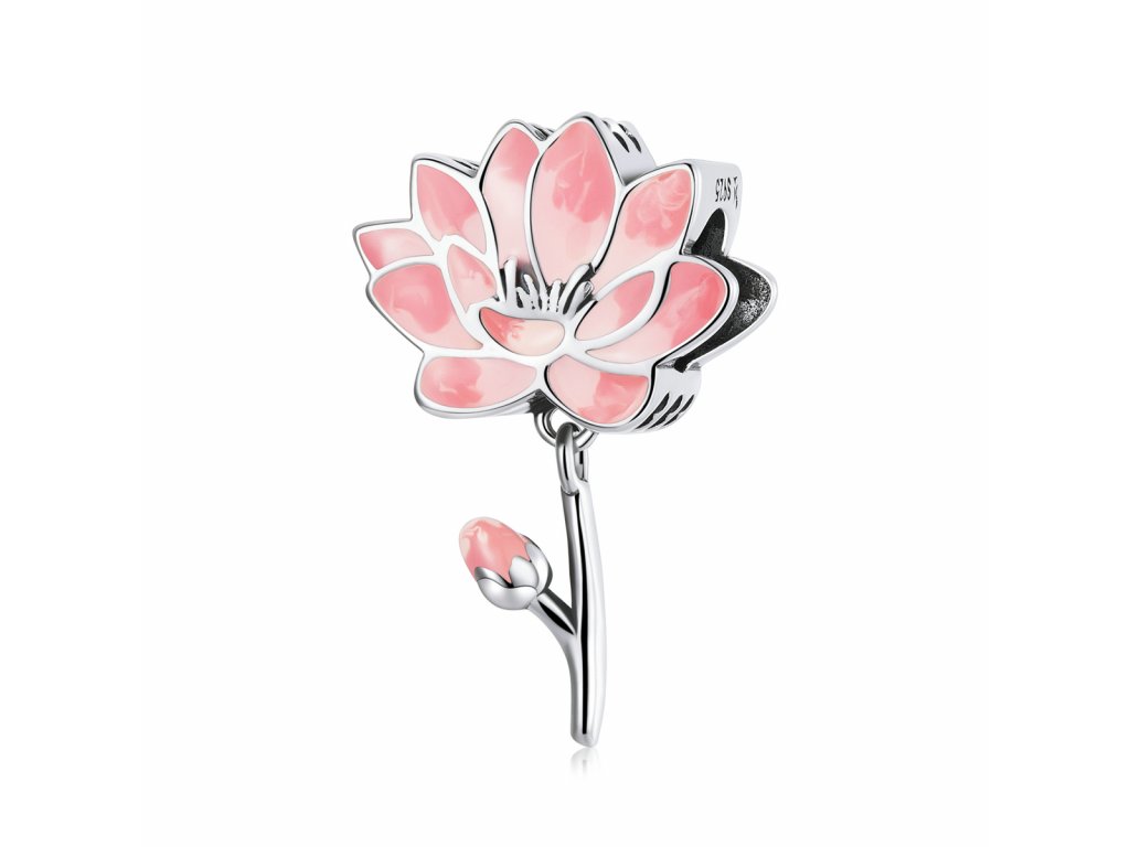 - Stříbrný přívěsek v designu lotosového květu zdobeného ručně nanášenou světle růžovou glazurou. Strany přívěsku jsou obohaceny ručně vyřezávanými milovanými srdíčky. Originální design přívěsku, kvalitní zpracování a materiál, ručně dohotovené.